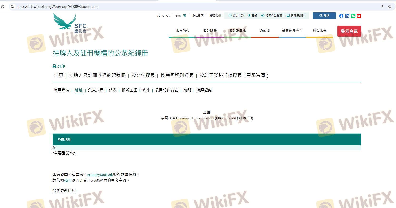| Securities and Futures Commission (SFC) | ALB 893 | Hong Kong | Aktif (tetapi menghentikan aktivitas regulasi) |