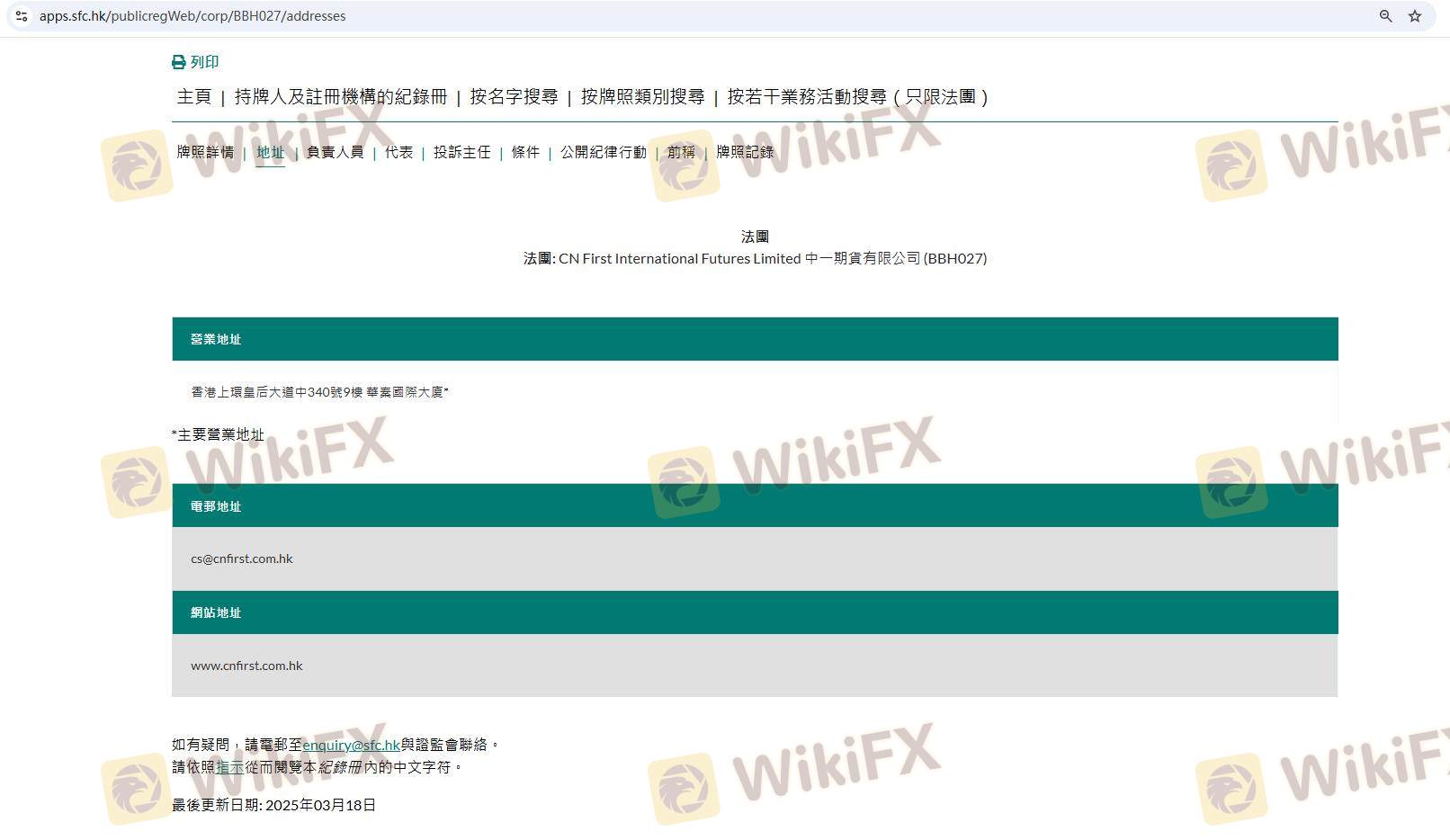 Mengenai legitimasi broker forex CN First, ia menyediakan Hong Kong SFC, dan (Kami juga melakukan investigasi lapangan terkait aspek keamanan.).