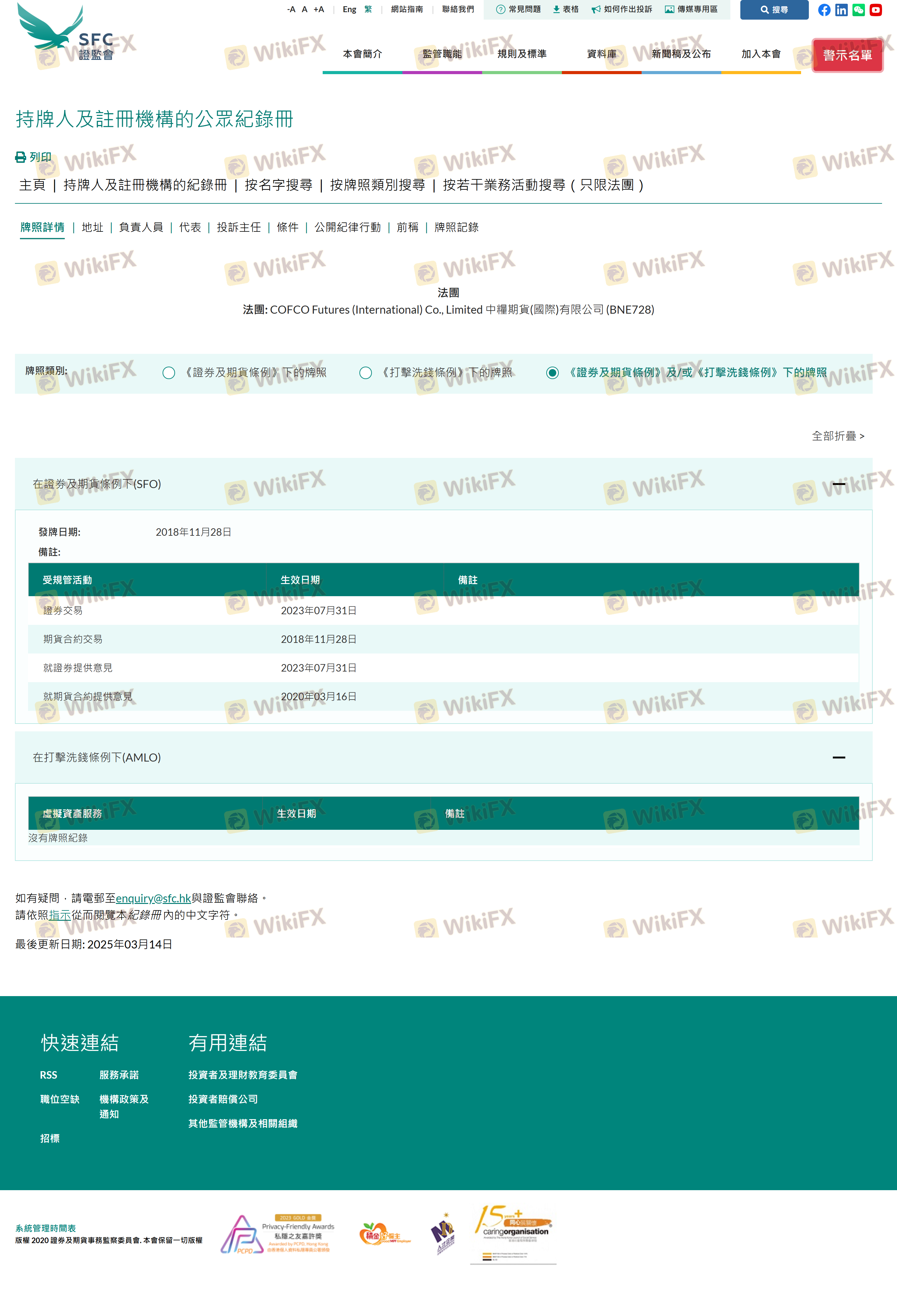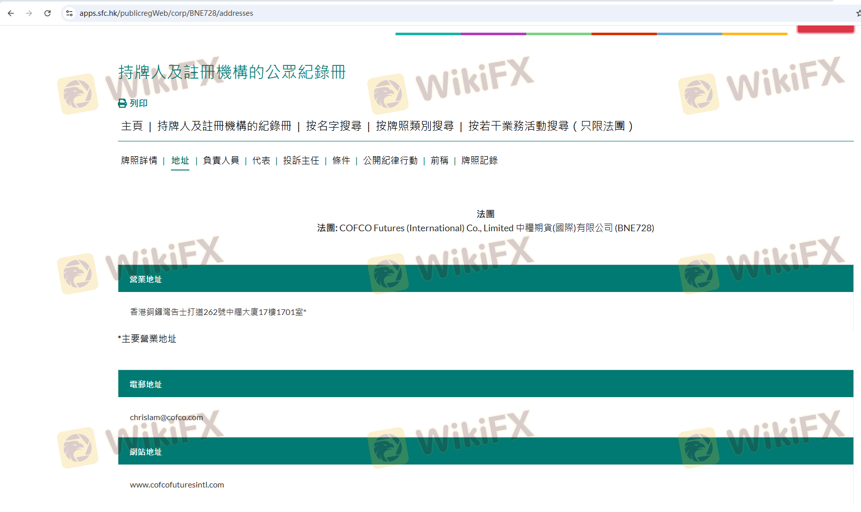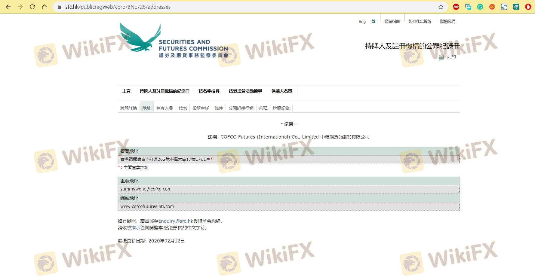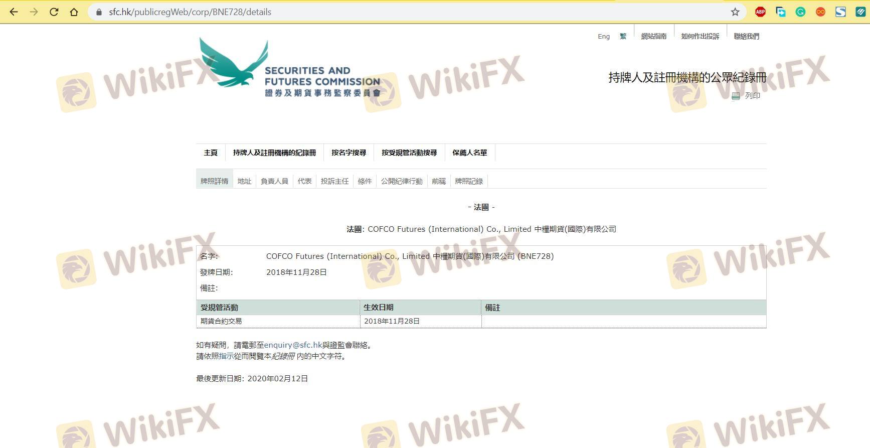 Mengenai legitimasi broker forex COFCO FUTURES INTL, ia menyediakan Hong Kong SFC, dan (Kami juga melakukan investigasi lapangan terkait aspek keamanan.).