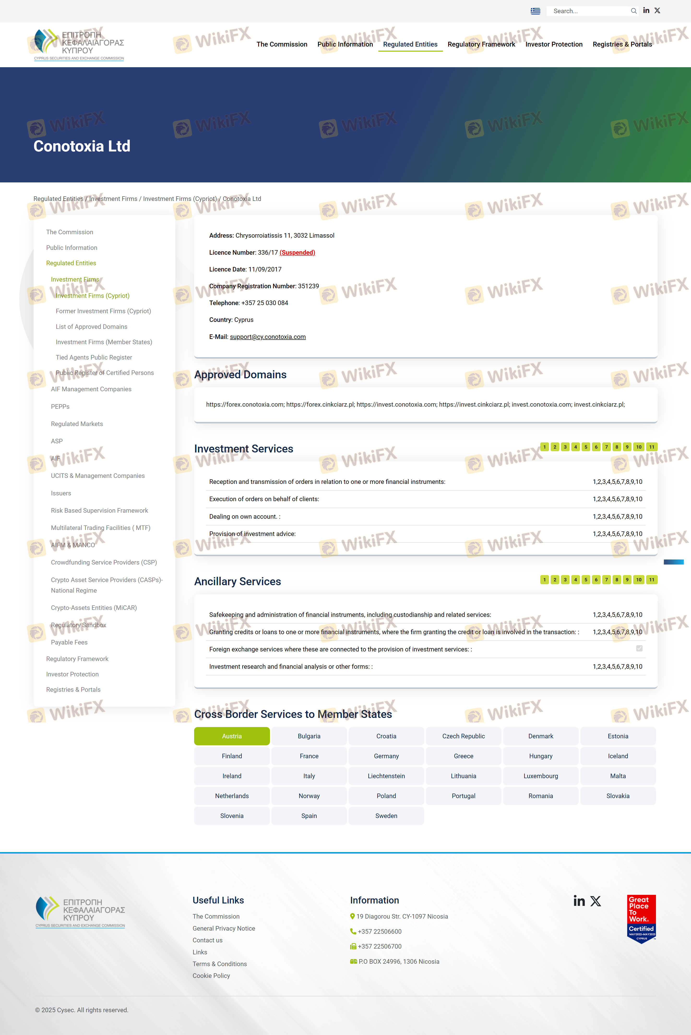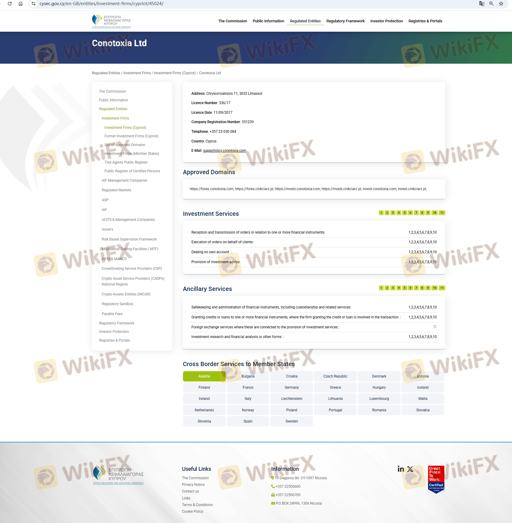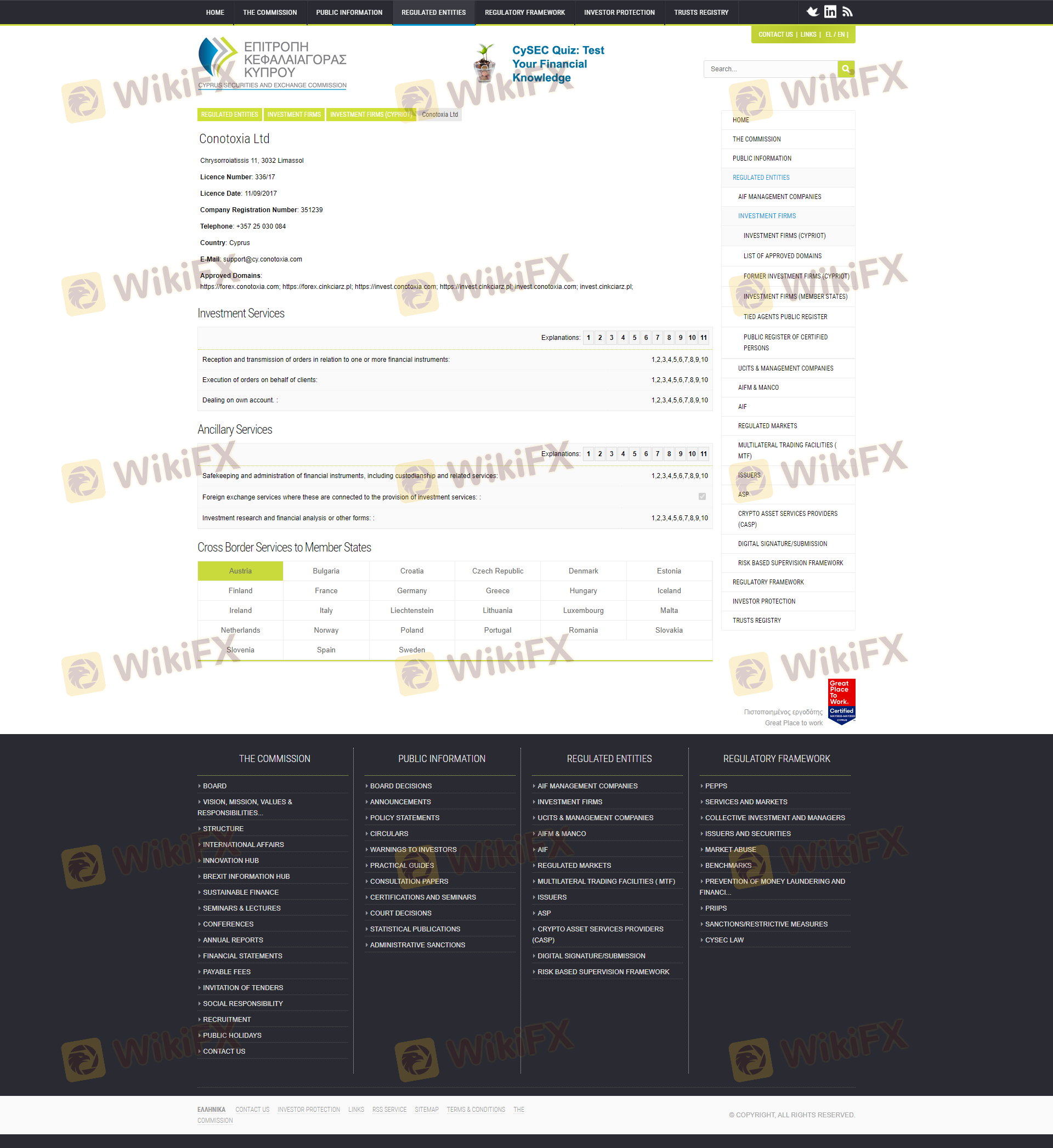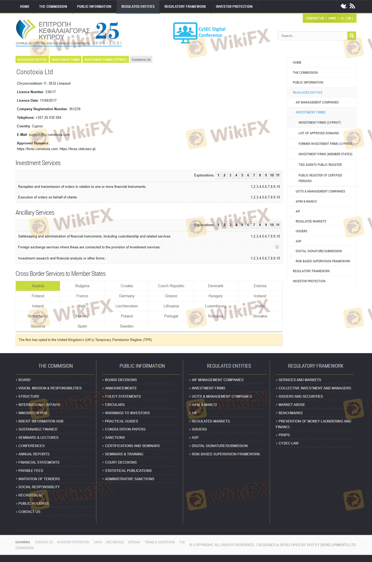 Mengenai legitimasi broker forex Conotoxia, ia menyediakan Siprus CYSEC, dan (Kami juga melakukan investigasi lapangan terkait aspek keamanan.).