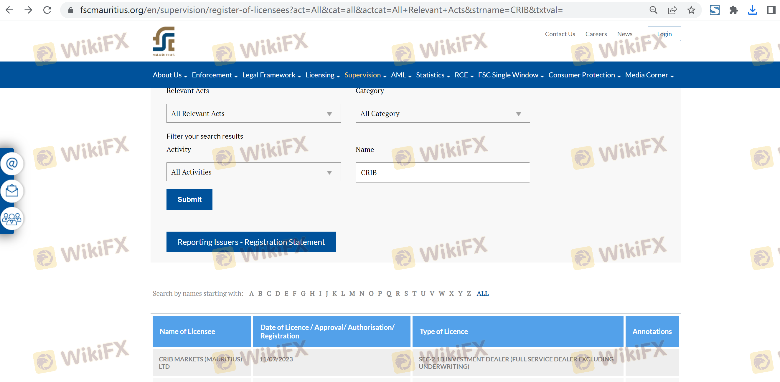 Mengenai legitimasi broker forex Crib Markets, ia menyediakan Mauritius FSC, dan .