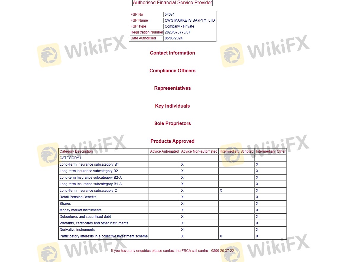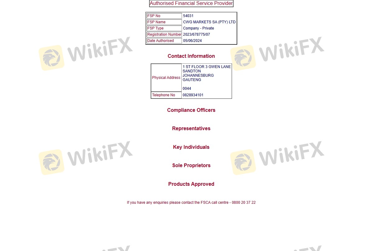 Mengenai legitimasi broker forex CWG Markets, ia menyediakan Kerajaan Inggris FCA, Afrika Selatan FSCA, Vanuatu VFSC, dan (Kami juga melakukan investigasi lapangan terkait aspek keamanan.).