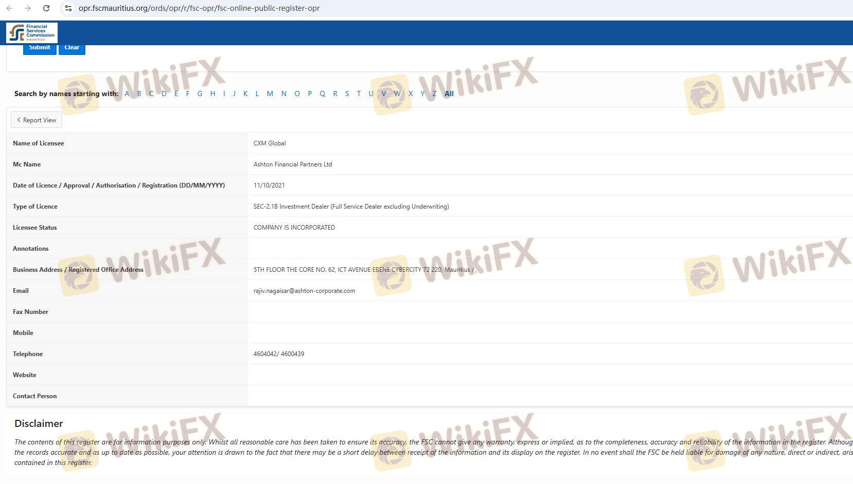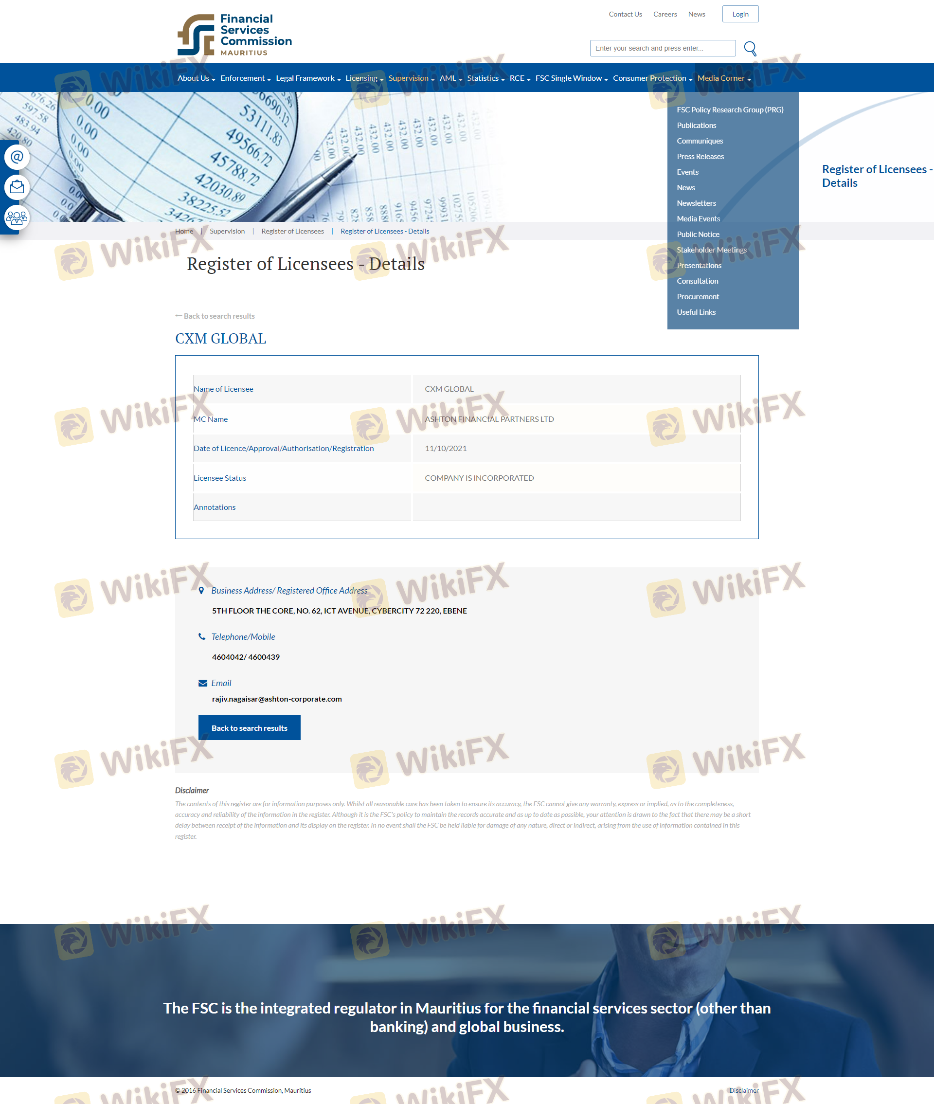 Lingkungan regulasi sangat penting bagi broker mana pun karena memberikan kerangka kerja untuk akuntabilitas dan perlindungan investor. CXM mengklaim beroperasi di bawah naungan beberapa badan regulasi, termasuk Financial Conduct Authority (FCA) di Inggris dan Financial Services Commission (FSC) di Mauritius. Namun, terdapat perbedaan signifikan mengenai status regulasi sebenarnya.