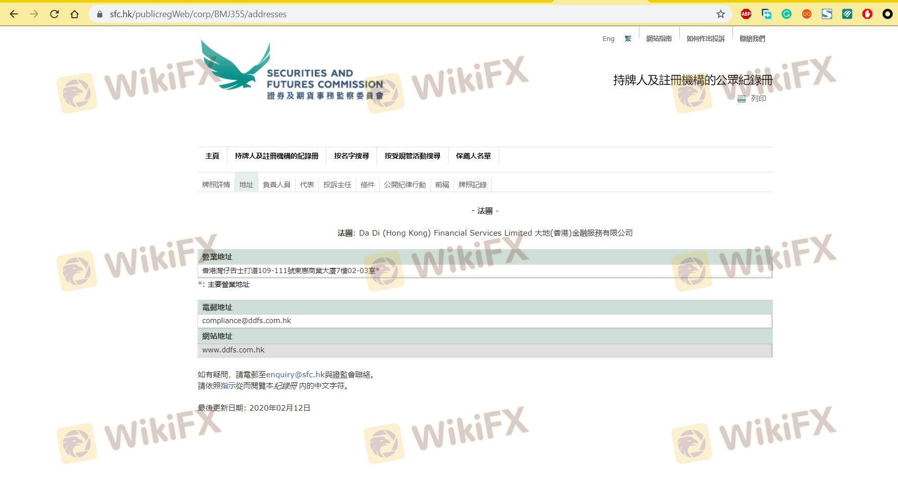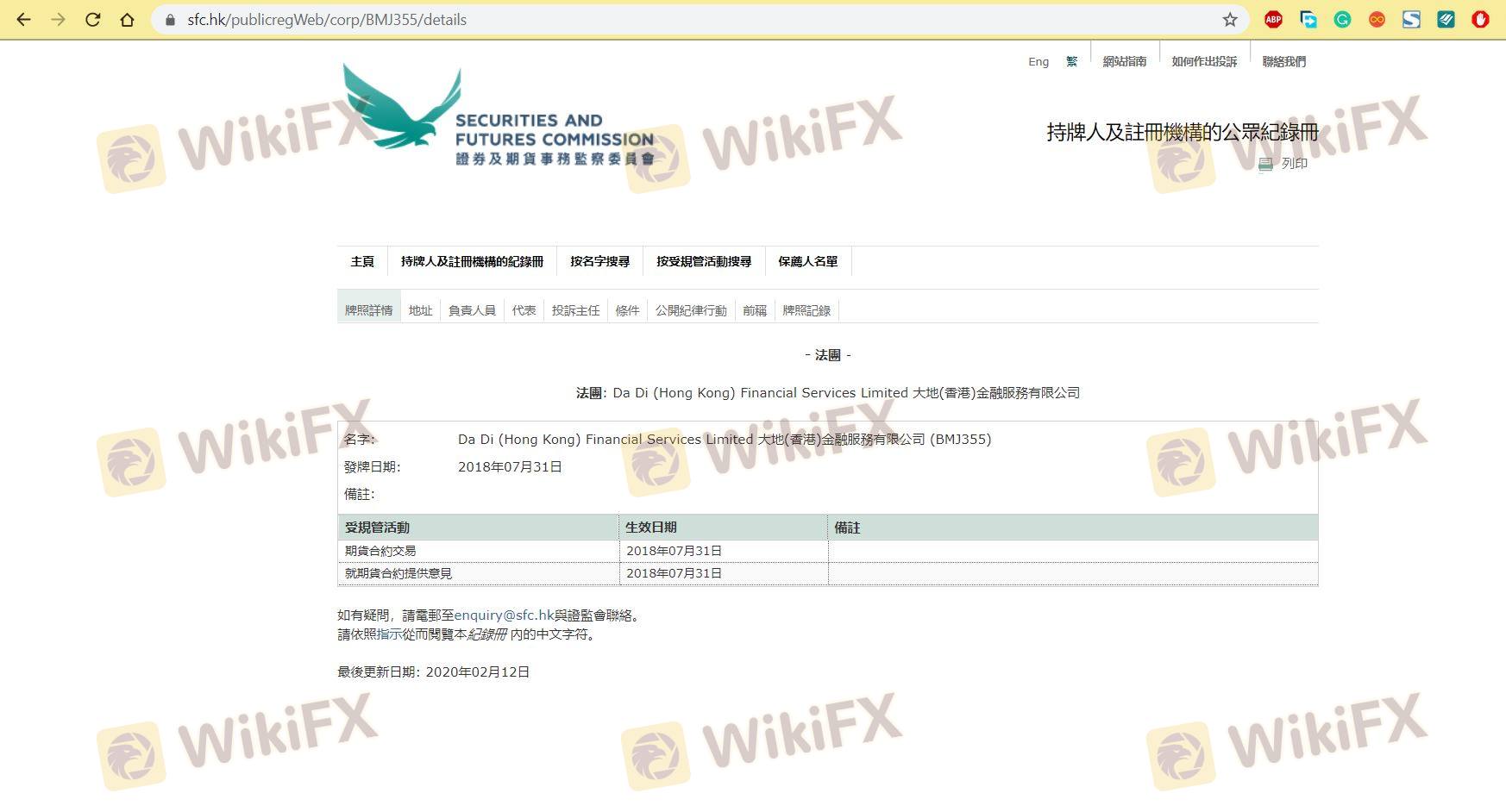 Mengenai legitimasi broker forex Da Di (Hong Kong), ia menyediakan Hong Kong SFC, dan (Kami juga melakukan investigasi lapangan terkait aspek keamanan.).