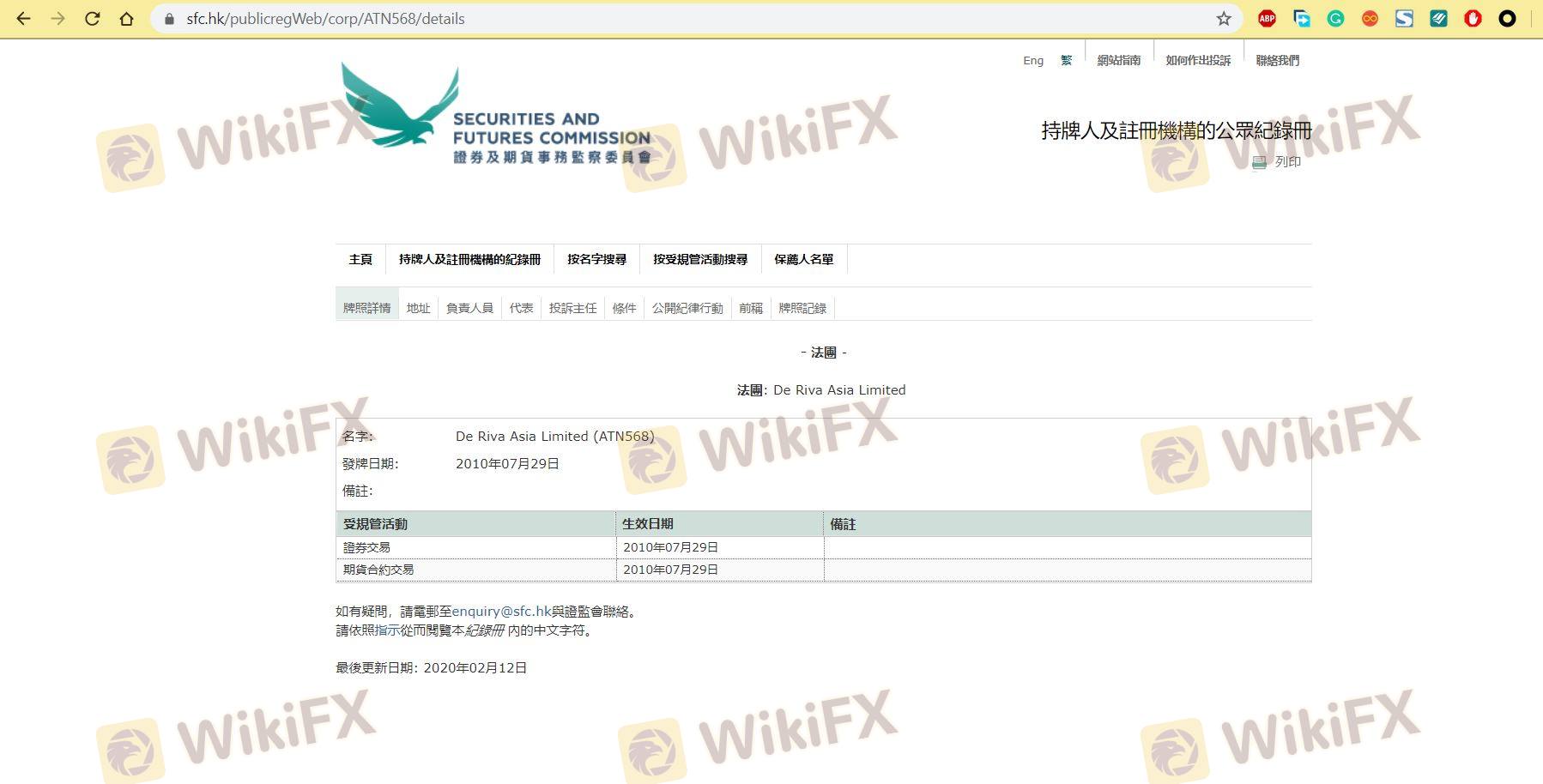 Salah satu faktor paling kritis dalam menentukan apakah De Riva aman adalah status regulasinya. Regulasi berfungsi sebagai perlindungan bagi trader, memastikan bahwa broker mematuhi standar perilaku dan praktik keuangan tertentu. Dalam kasus De Riva, ada laporan yang beragam mengenai pengawasan regulasinya. Menurut berbagai sumber, De Riva mengklaim diatur di bawah Hong Kong Securities and Futures Commission (SFC). Namun, ada kekhawatiran signifikan mengenai kualitas dan transparansi regulasi ini.