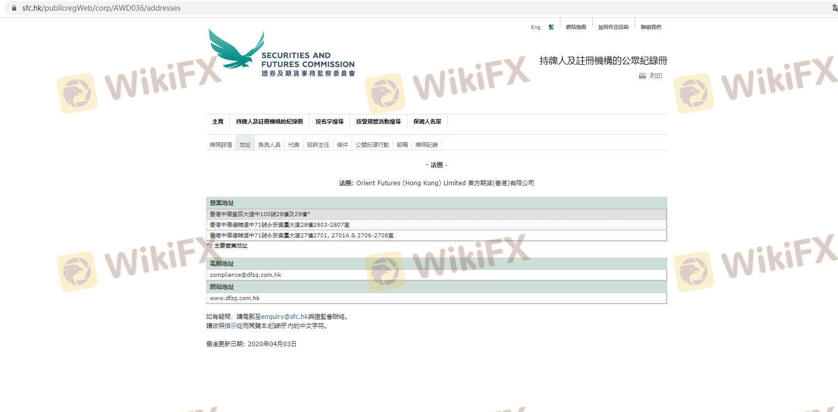 Mengenai legitimasi broker forex DFZQ, ia menyediakan Hong Kong SFC, dan (Kami juga melakukan investigasi lapangan terkait aspek keamanan.).
