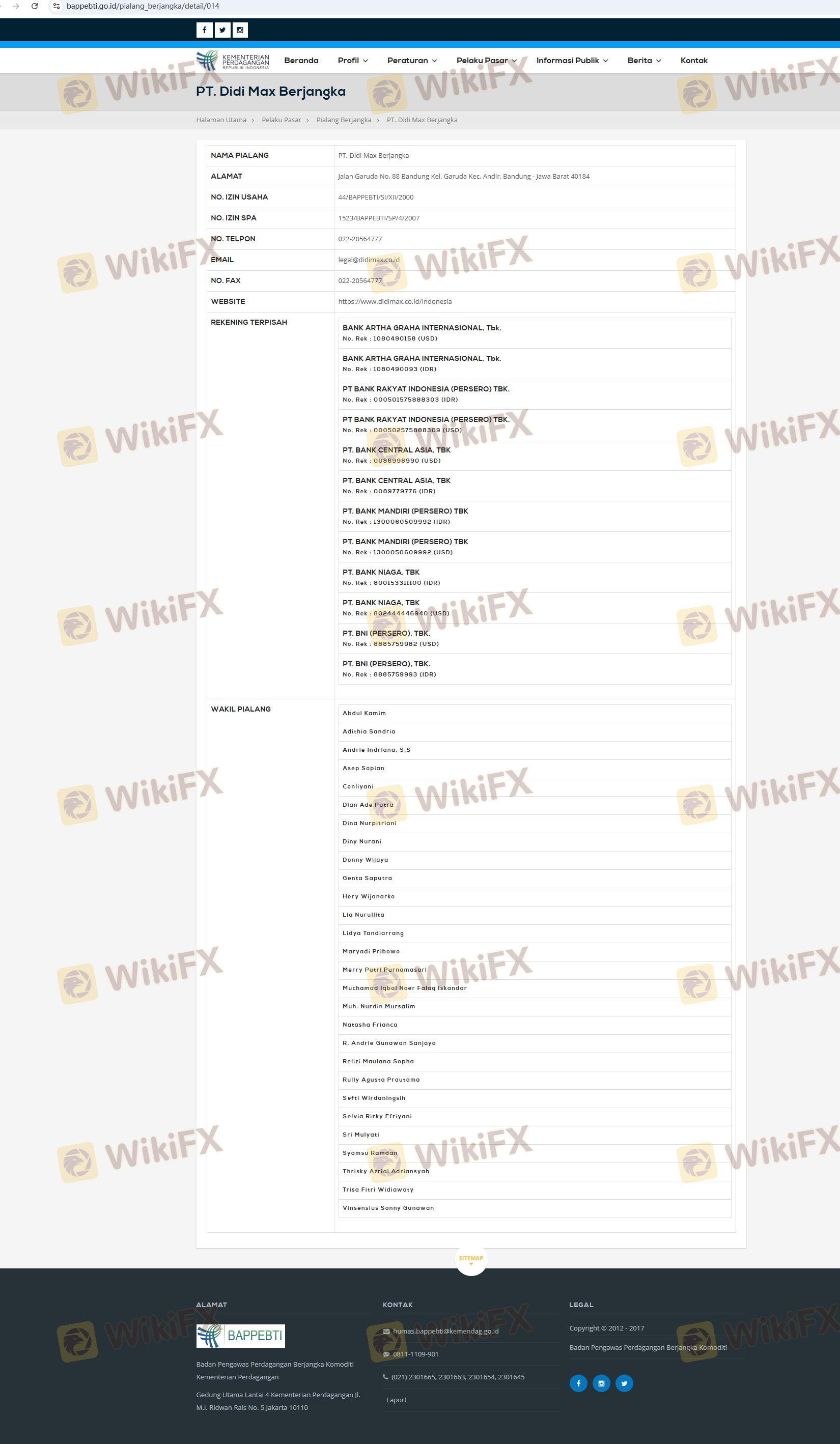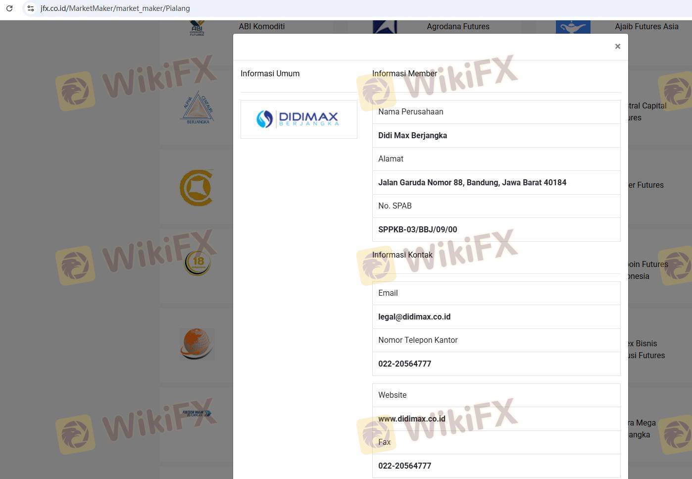Kerangka regulasi di mana broker beroperasi sangat penting untuk menentukan legalitas dan tingkat perlindungan yang ditawarkan kepada trader. Didimax diatur oleh Badan Pengawas Perdagangan Berjangka Komoditi (Bappebti) Indonesia, yang mengawasi perdagangan komoditas dan berjangka di Indonesia. Namun, penting untuk dicatat bahwa Bappebti tidak seketat beberapa badan regulasi global, yang dapat menimbulkan kekhawatiran mengenai tingkat perlindungan investor yang diberikan.