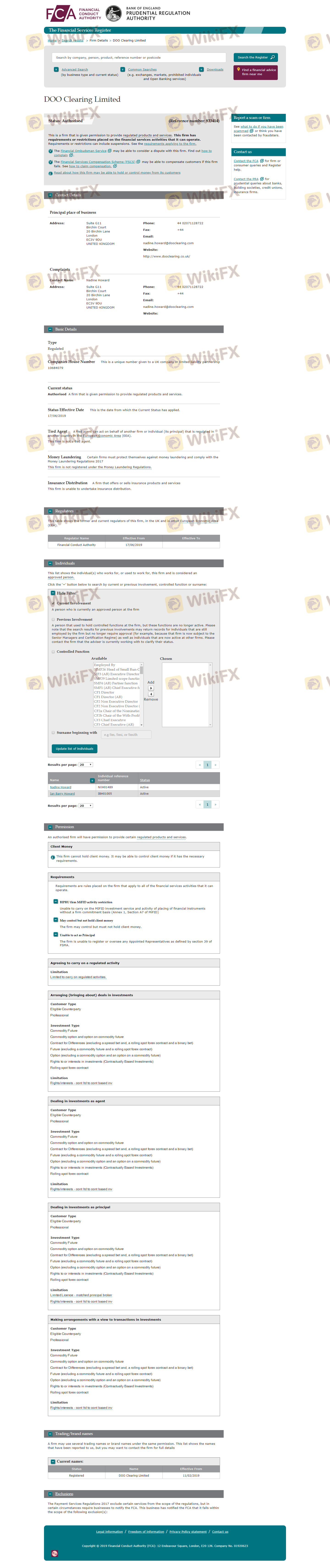 Mengenai legitimasi broker forex Doo Clearing, ia menyediakan Kerajaan Inggris FCA, dan (Kami juga melakukan investigasi lapangan terkait aspek keamanan.).