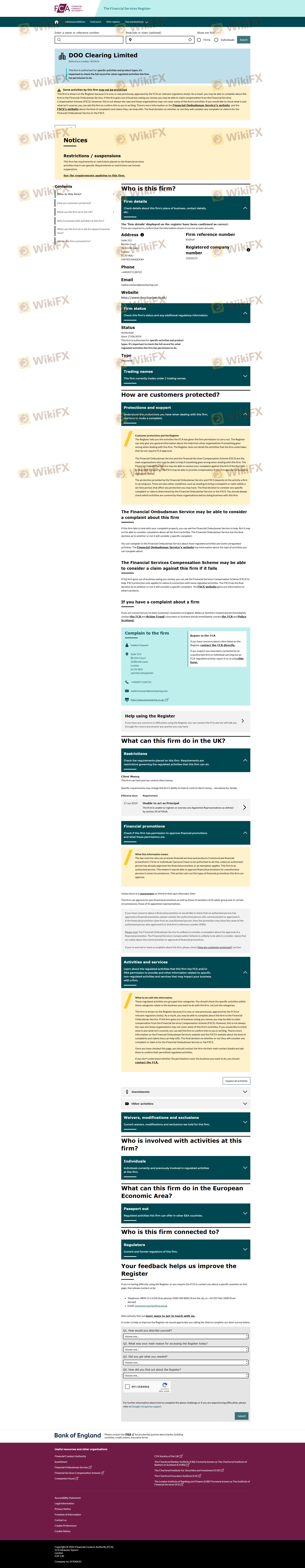 Doo Clearing diatur oleh Financial Conduct Authority (FCA) di Inggris, yang secara luas dianggap sebagai otoritas regulasi tingkat atas. FCA menerapkan persyaratan ketat pada perusahaan keuangan untuk memastikan perlindungan dana klien dan menjaga integritas pasar. Berikut adalah ringkasan informasi regulasi untuk Doo Clearing: