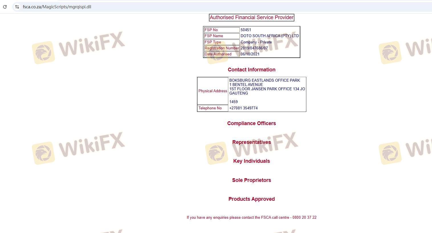 Mengenai legitimasi broker forex doto, ia menyediakan Siprus CYSEC, Afrika Selatan FSCA, Seychelles FSA, dan (Kami juga melakukan investigasi lapangan terkait aspek keamanan.).