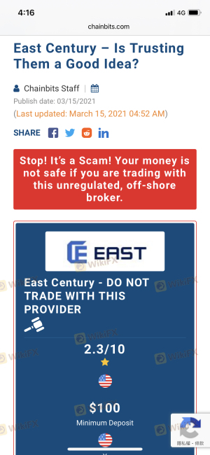 Memahami sejarah perusahaan dan struktur kepemilikan memberikan wawasan tentang kredibilitasnya. East belum mengungkapkan informasi substansial tentang pendiriannya, sejarah operasional, atau kepemilikan, yang berkontribusi pada kurangnya transparansi. Broker yang terpercaya biasanya berbagi detail tentang tim manajemen dan kualifikasi mereka, yang meningkatkan kepercayaan di antara calon klien.