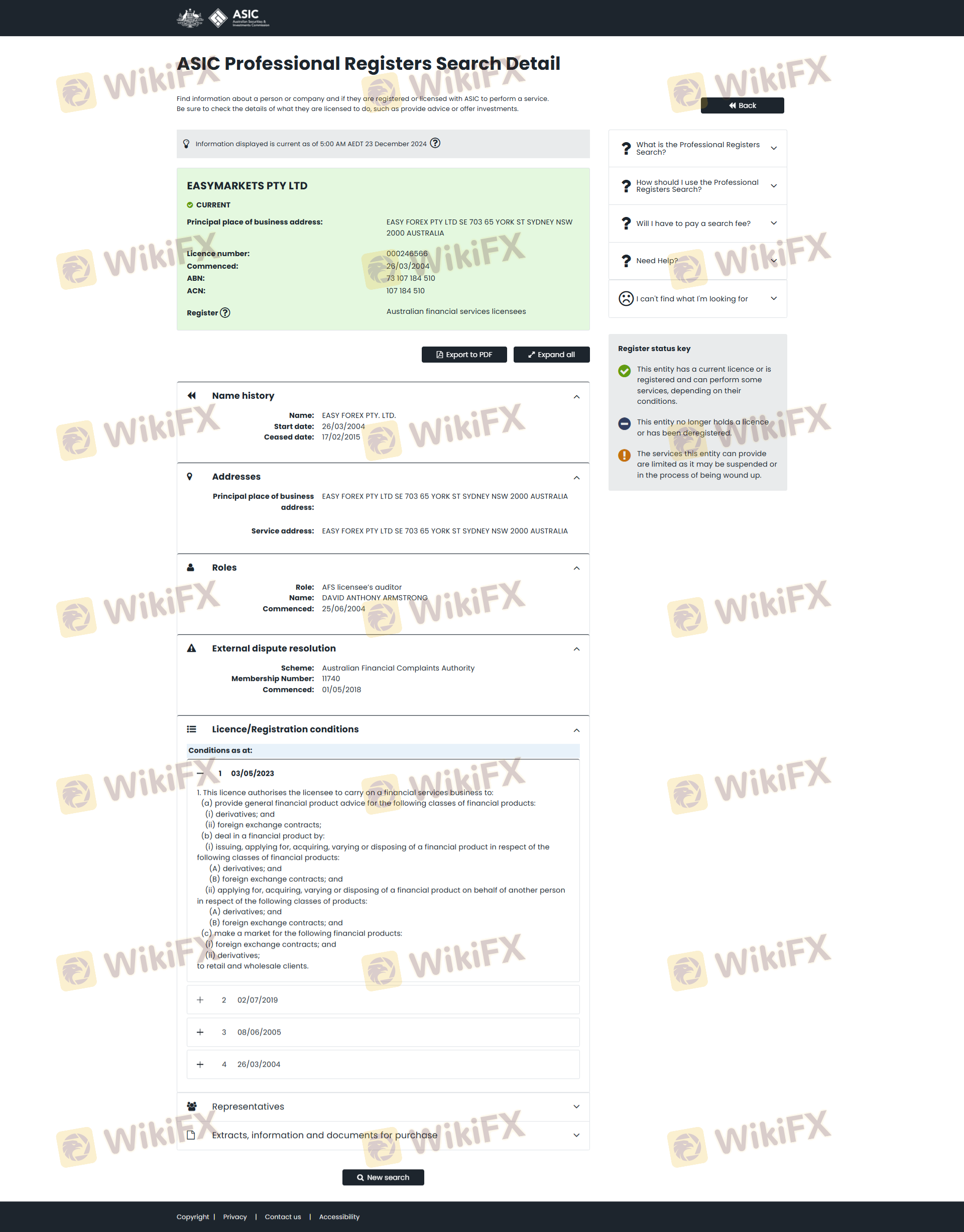 Status regulasi broker adalah faktor kritis dalam menentukan kepercayaannya. easyMarkets diatur oleh beberapa otoritas keuangan terkemuka, yang menambah lapisan keamanan bagi trader. Tabel berikut merangkum informasi regulasi utama untuk easyMarkets: