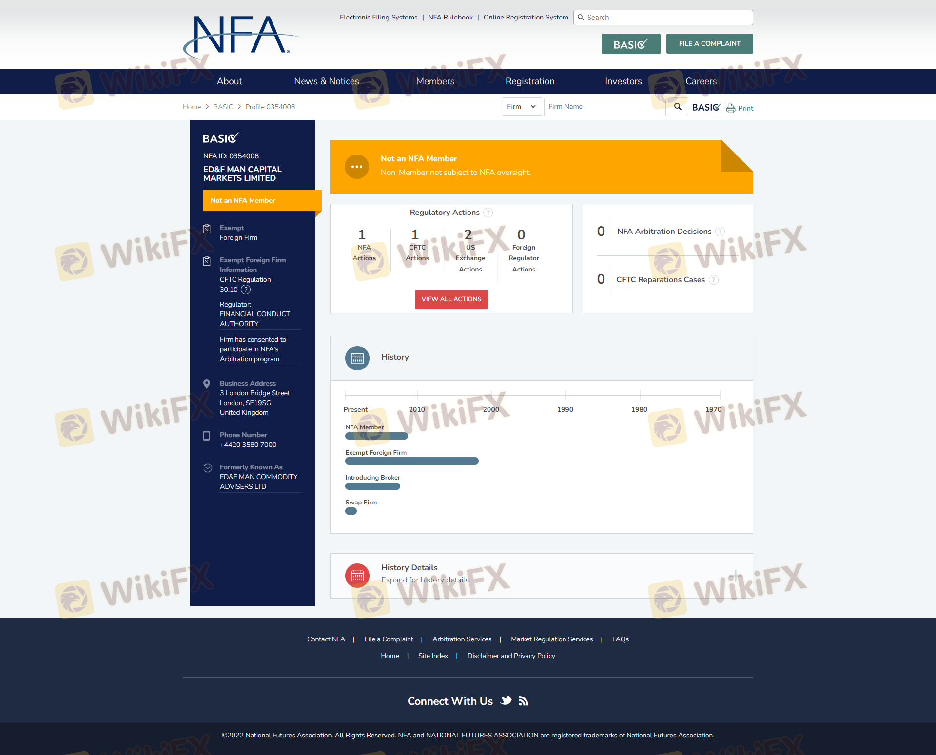 Mengenai legitimasi broker forex ED&F Man, ia menyediakan Hong Kong SFC, Kerajaan Inggris FCA, Amerika Serikat NFA, Uni Emirat Arab DFSA, dan (Kami juga melakukan investigasi lapangan terkait aspek keamanan.).
