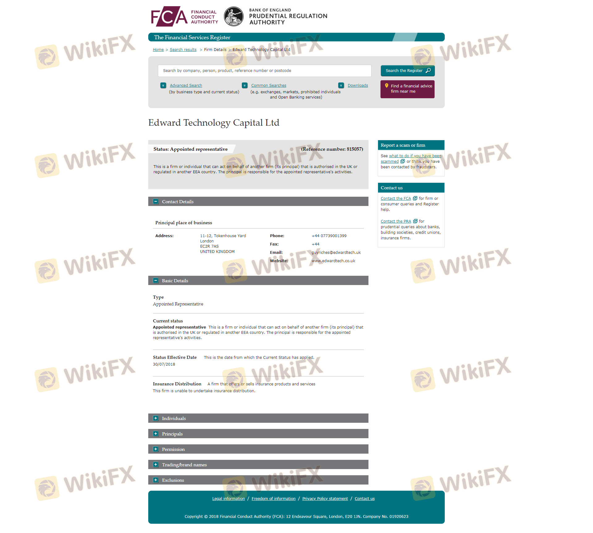Salah satu faktor paling kritis dalam menentukan keamanan broker adalah status regulasinya. Broker yang diatur harus mematuhi pedoman ketat dari otoritas keuangan, yang menjamin perlindungan dana klien. Edward mengklaim diatur oleh Financial Conduct Authority (FCA) di Inggris; namun, pemeriksaan lebih lanjut menunjukkan klaim ini dipertanyakan.
