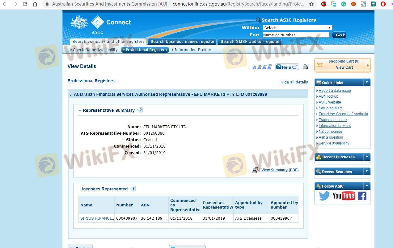 Mengenai legitimasi broker forex EFUFX, ia menyediakan Australia ASIC, Vanuatu VFSC, dan (Kami juga melakukan investigasi lapangan terkait aspek keamanan.).