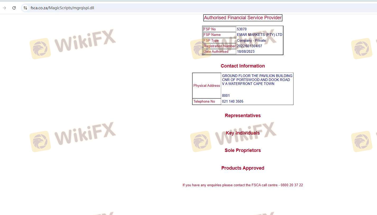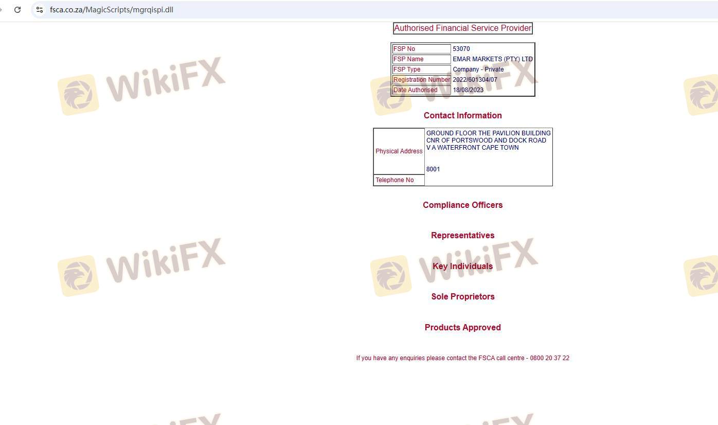 Mengenai legitimasi broker forex EMAR MARKETS, ia menyediakan Afrika Selatan FSCA, dan (Kami juga melakukan investigasi lapangan terkait aspek keamanan.).