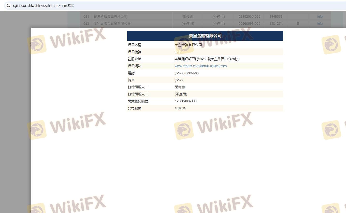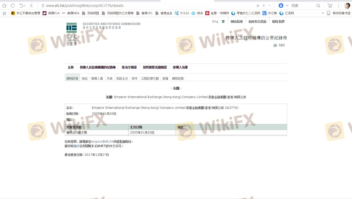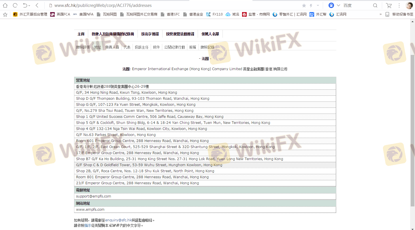 Mengenai legitimasi broker forex EMPEROR Xpro, ia menyediakan Hong Kong HKGX, Hong Kong SFC, dan .