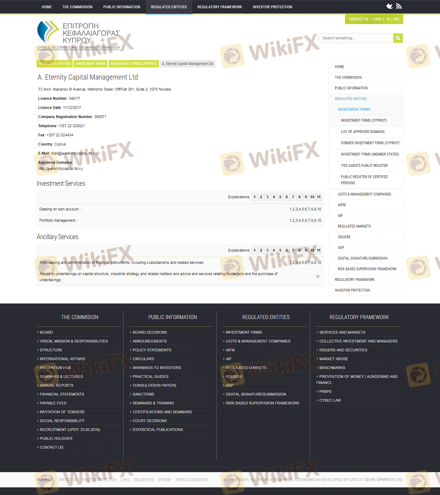 Mengenai legitimasi broker forex ETERNITY CAPITAL MANAGEMENT LIMITED, ia menyediakan Siprus CYSEC, dan (Kami juga melakukan investigasi lapangan terkait aspek keamanan.).