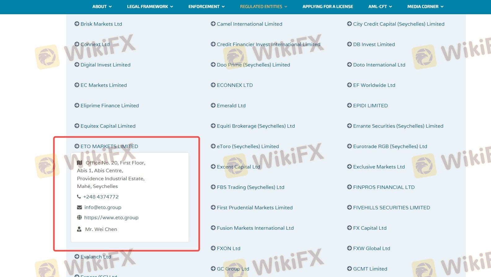 Mengenai legitimasi broker forex ETO Markets, ia menyediakan Australia ASIC, Seychelles FSA, dan (Kami juga melakukan investigasi lapangan terkait aspek keamanan.).