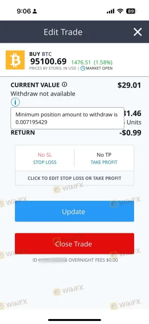 Spread eToro, terutama untuk perdagangan forex, dianggap lebih tinggi dari rata-rata industri, yang mungkin menghalangi trader aktif yang mencari biaya transaksi lebih rendah. Selain itu, eToro mengenakan biaya 1% untuk membeli dan menjual cryptocurrency, yang bisa bertambah seiring waktu bagi trader yang sering bertransaksi. Platform juga menerapkan biaya penarikan $5, yang relatif standar tetapi bisa menjadi kelemahan bagi pengguna yang ingin meminimalkan biaya.