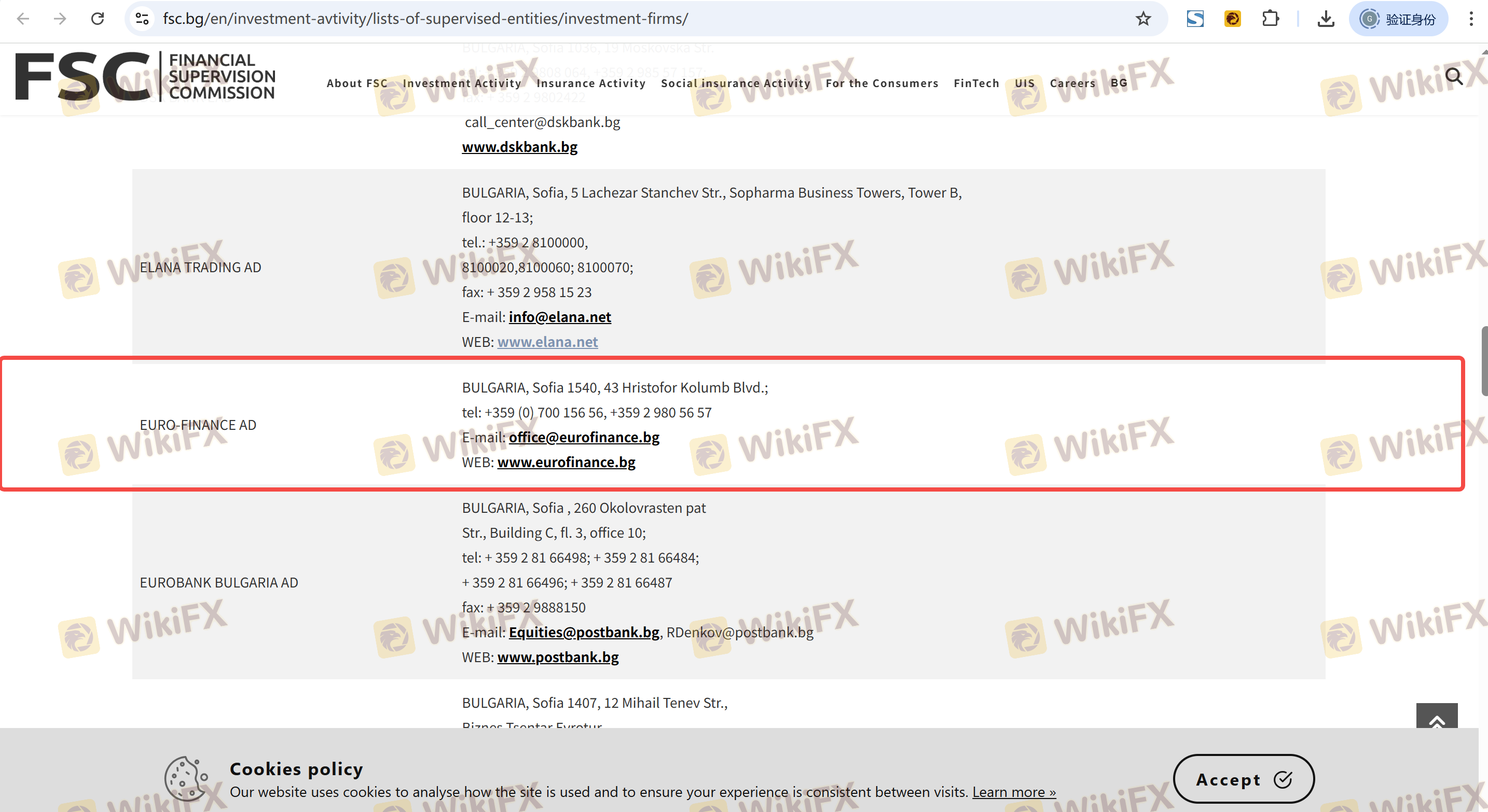 Mengenai legitimasi broker forex Euro Finance, ia menyediakan Bulgaria FSC, dan .