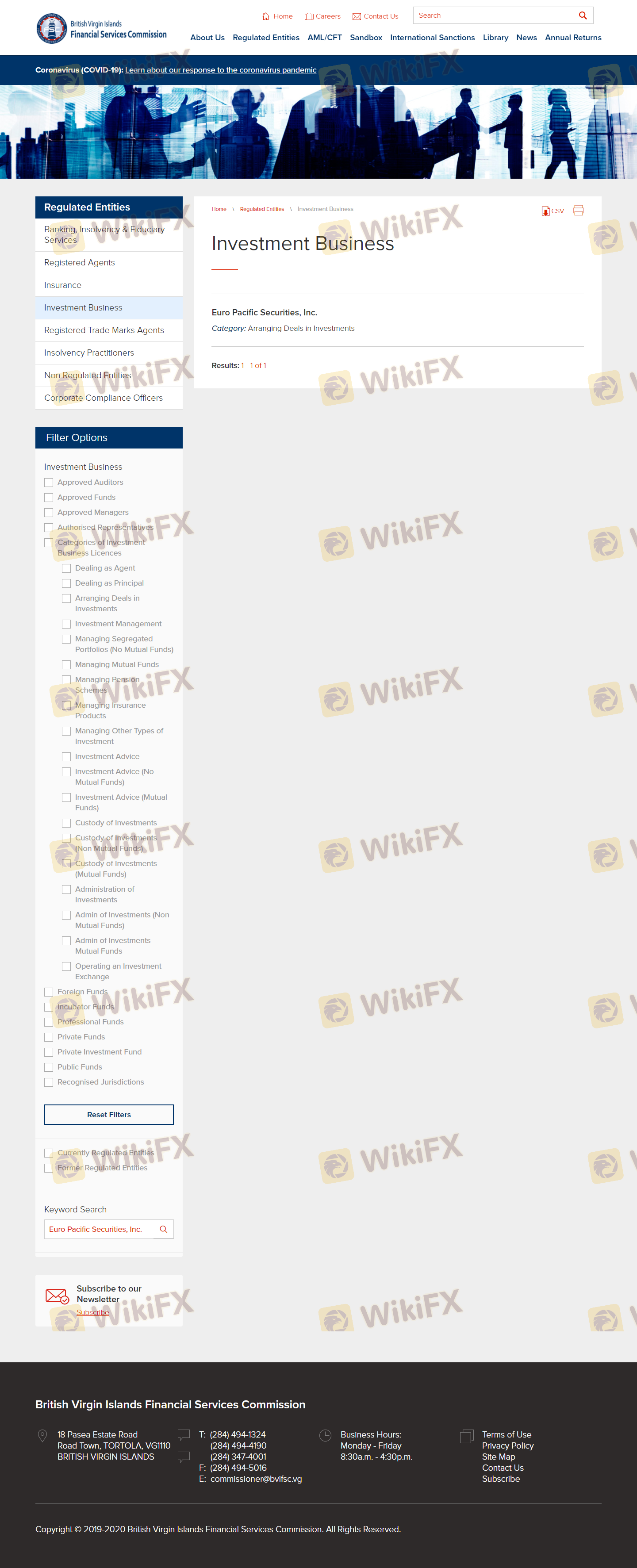 Mengenai legitimasi broker forex Euro Pacific Bank, ia menyediakan Kepulauan Virgin FSC, dan .