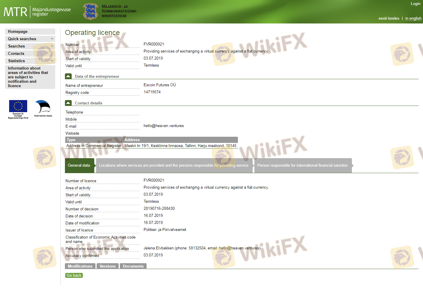 Mengenai legitimasi broker forex EXcoin, ia menyediakan Estonia MTR, dan .