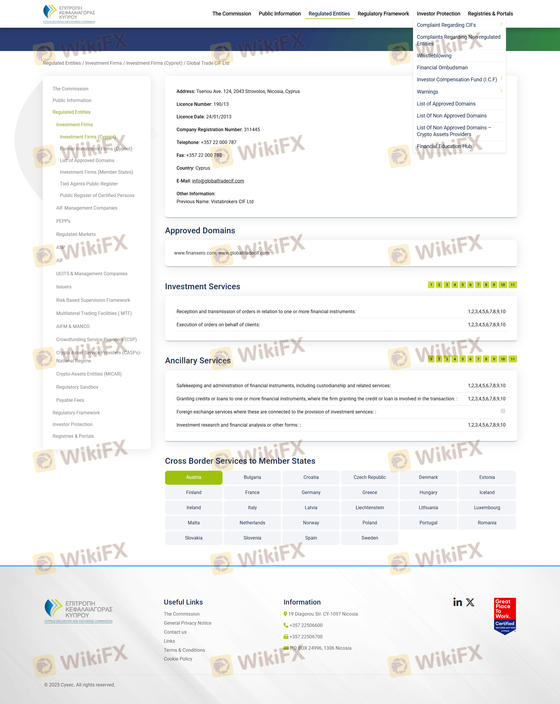 Mengenai legitimasi broker forex FINANSERO, ia menyediakan Siprus CYSEC, dan (Kami juga melakukan investigasi lapangan terkait aspek keamanan.).