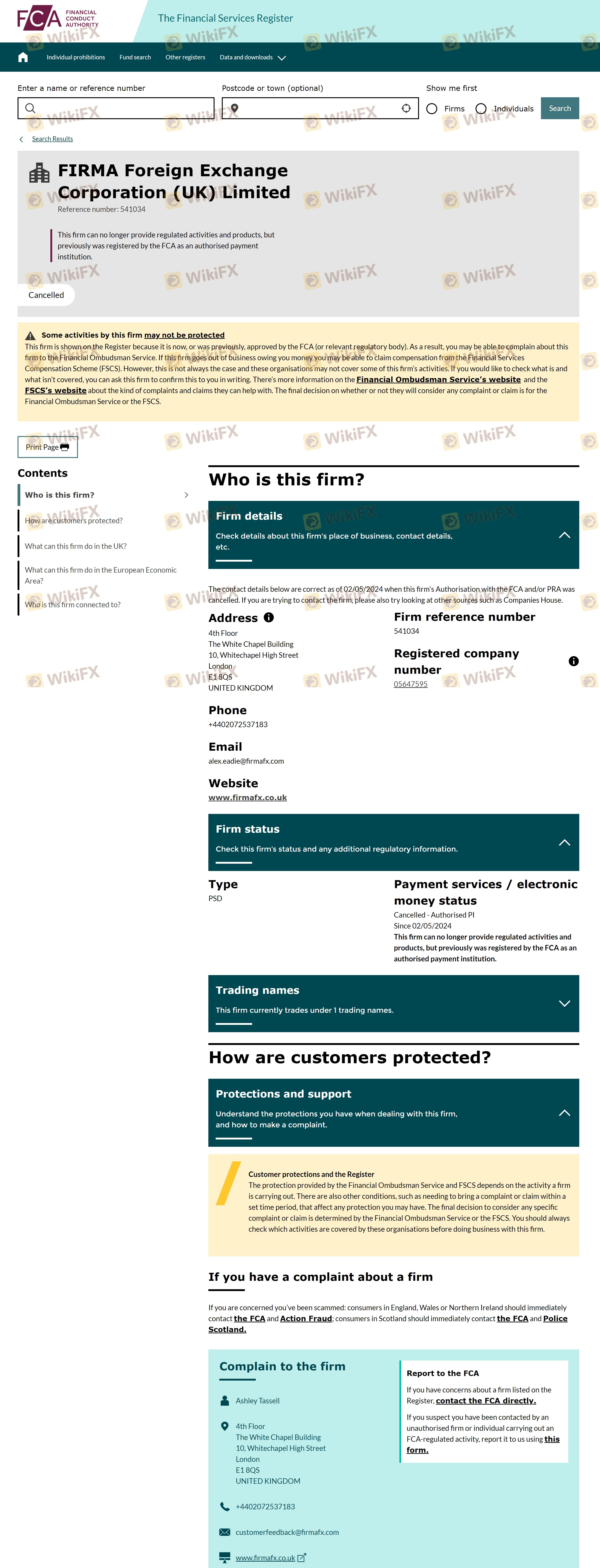 Firma didirikan dengan niat memberikan solusi keuangan inovatif untuk klien individu dan bisnis. Namun, sejarah operasionalnya yang singkat dan pencabutan lisensi FCA baru-baru ini memunculkan pertanyaan tentang stabilitas dan transparansinya. Perusahaan ini beroperasi dengan nama Firma Foreign Exchange Corporation (UK) Limited, tetapi sedikit informasi yang tersedia tentang struktur kepemilikannya atau latar belakang profesional tim manajemennya.