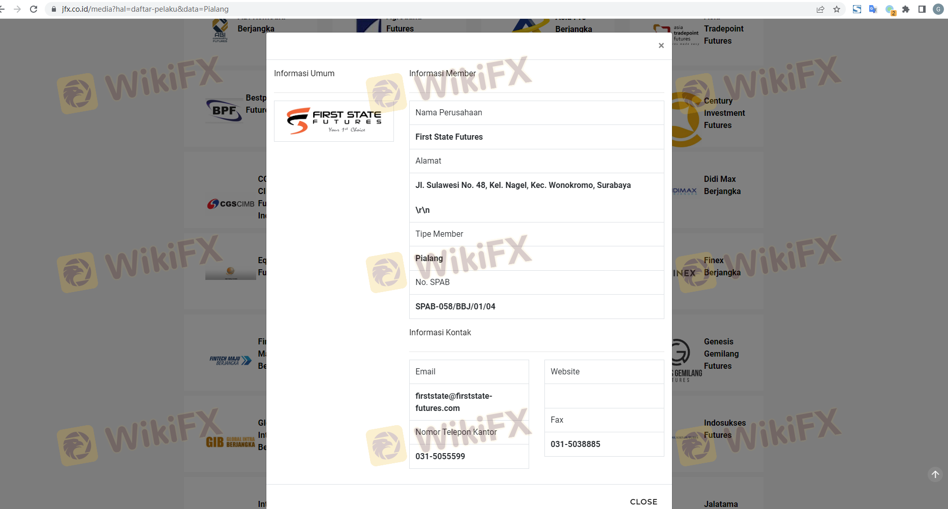 First State Futures adalah perusahaan pialang yang berbasis di Surabaya, Indonesia, yang mengkhususkan diri dalam perdagangan forex dan komoditas. Didirikan pada tahun 2010, perusahaan ini bertujuan untuk menyediakan platform bagi trader pemula maupun berpengalaman di dunia valas yang dinamis. Namun, karena pasar forex dipenuhi dengan entitas yang sah maupun penipuan, trader harus berhati-hati dalam memilih pialang. Pentingnya due diligence tidak bisa dianggap remeh, karena taruhan finansial dalam perdagangan forex sangat besar dan potensi kerugiannya tinggi. Artikel ini bertujuan untuk memberikan analisis objektif tentang First State Futures, mengevaluasi keamanan, status regulasi, pengalaman pelanggan, dan kredibilitas secara keseluruhan. Investigasi ini mengacu pada berbagai ulasan online, basis data regulasi, dan umpan balik pengguna untuk menilai apakah First State Futures adalah opsi perdagangan yang aman atau potensi penipuan.
