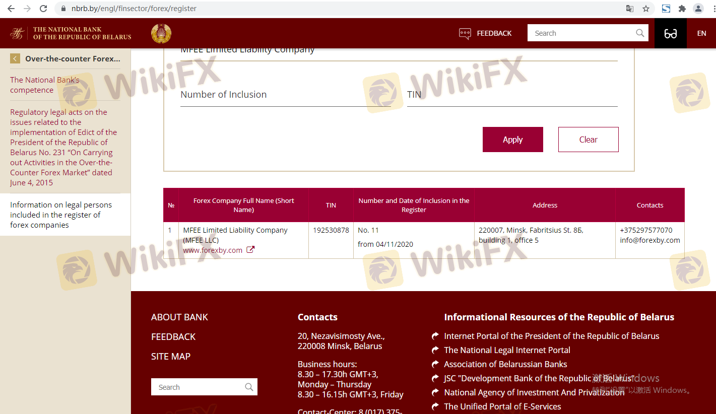 Mengenai legitimasi broker forex ForexBY, ia menyediakan Belarus NBRB, dan (Kami juga melakukan investigasi lapangan terkait aspek keamanan.).