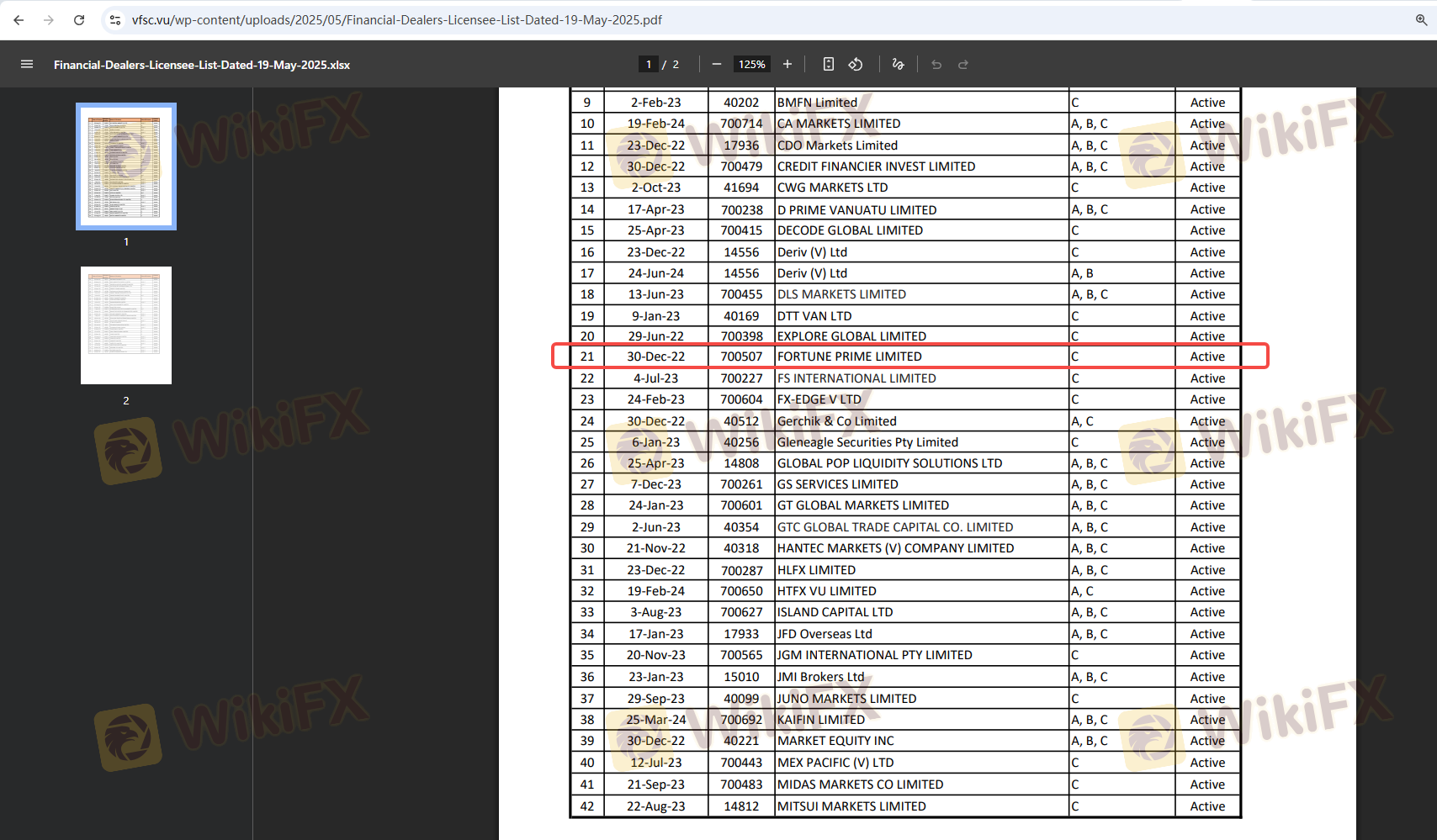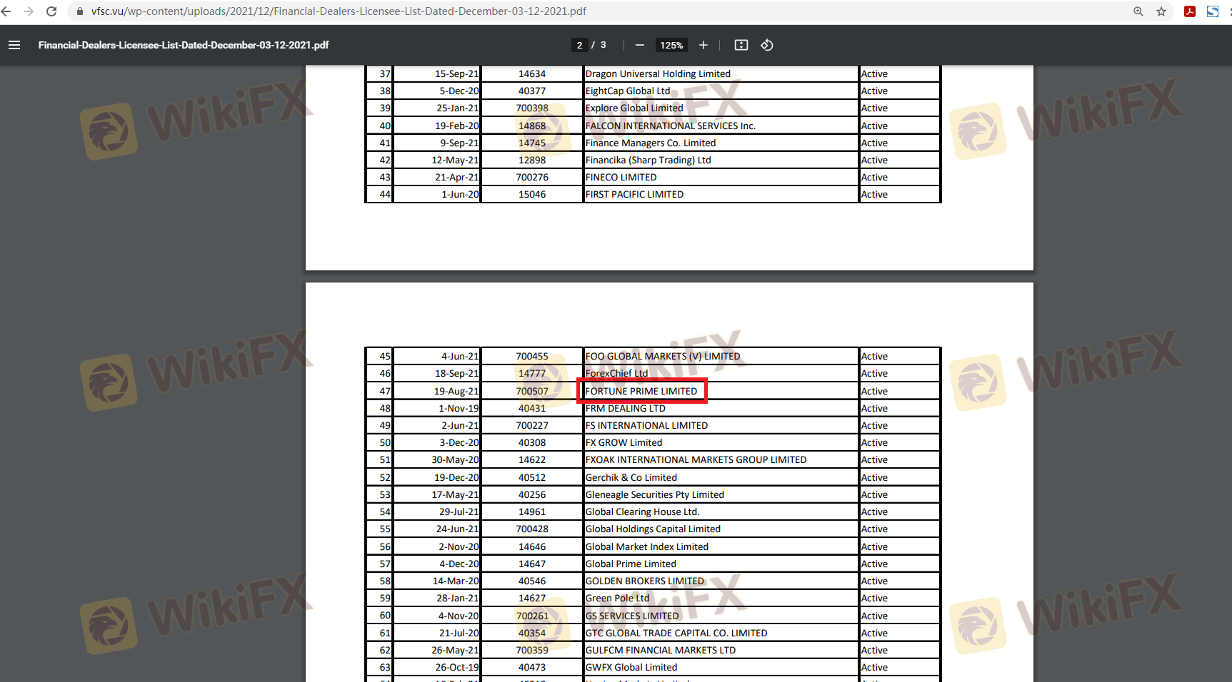 Mengenai legitimasi broker forex Fortune Prime Global, ia menyediakan Australia ASIC, Vanuatu VFSC, dan (Kami juga melakukan investigasi lapangan terkait aspek keamanan.).
