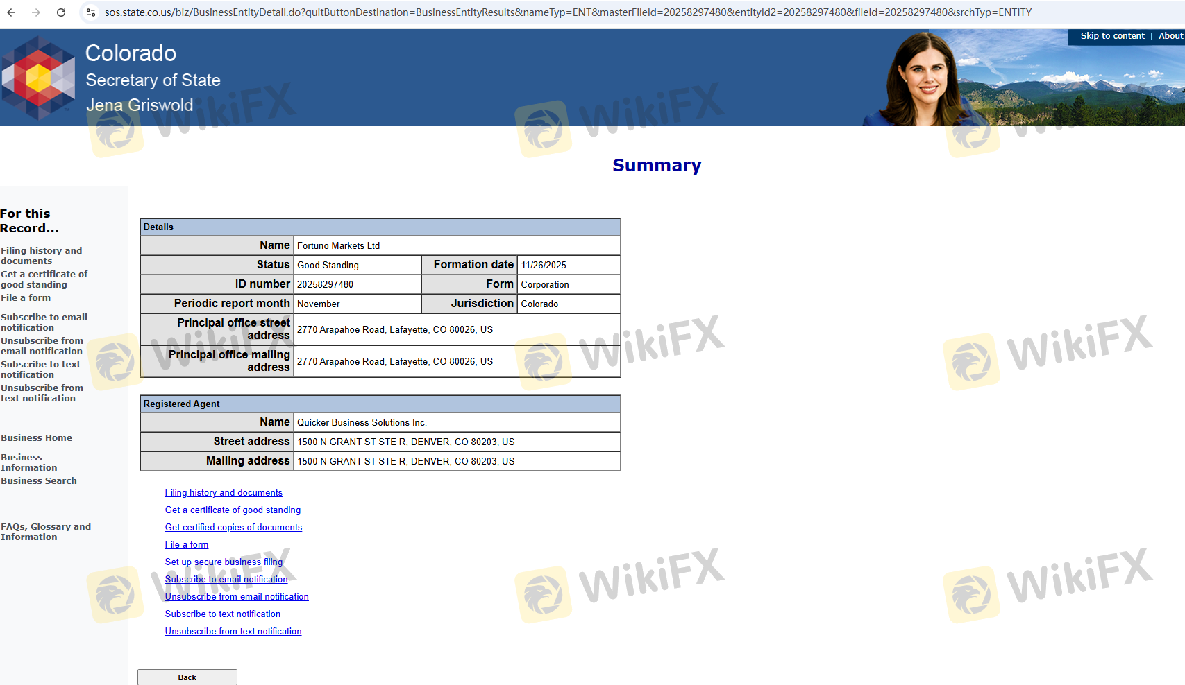 Fortuno Markets mengklaim teregulasi oleh National Futures Association (NFA) dan menyatakan memiliki kantor di Saint Lucia dan Inggris. Namun, pencarian di situs resmi NFA tidak menemukan catatan tentang broker ini, menunjukkan representasi yang menyesatkan tentang status regulasinya. Selain itu, investigasi menunjukkan bahwa kantor yang diklaim tidak ada, semakin memperkuat kekhawatiran tentang legitimasi broker ini. Tidak adanya pengawasan regulasi berarti trader tidak memiliki perlindungan jika terjadi sengketa atau aktivitas penipuan, sehingga calon investor harus sangat berhati-hati.