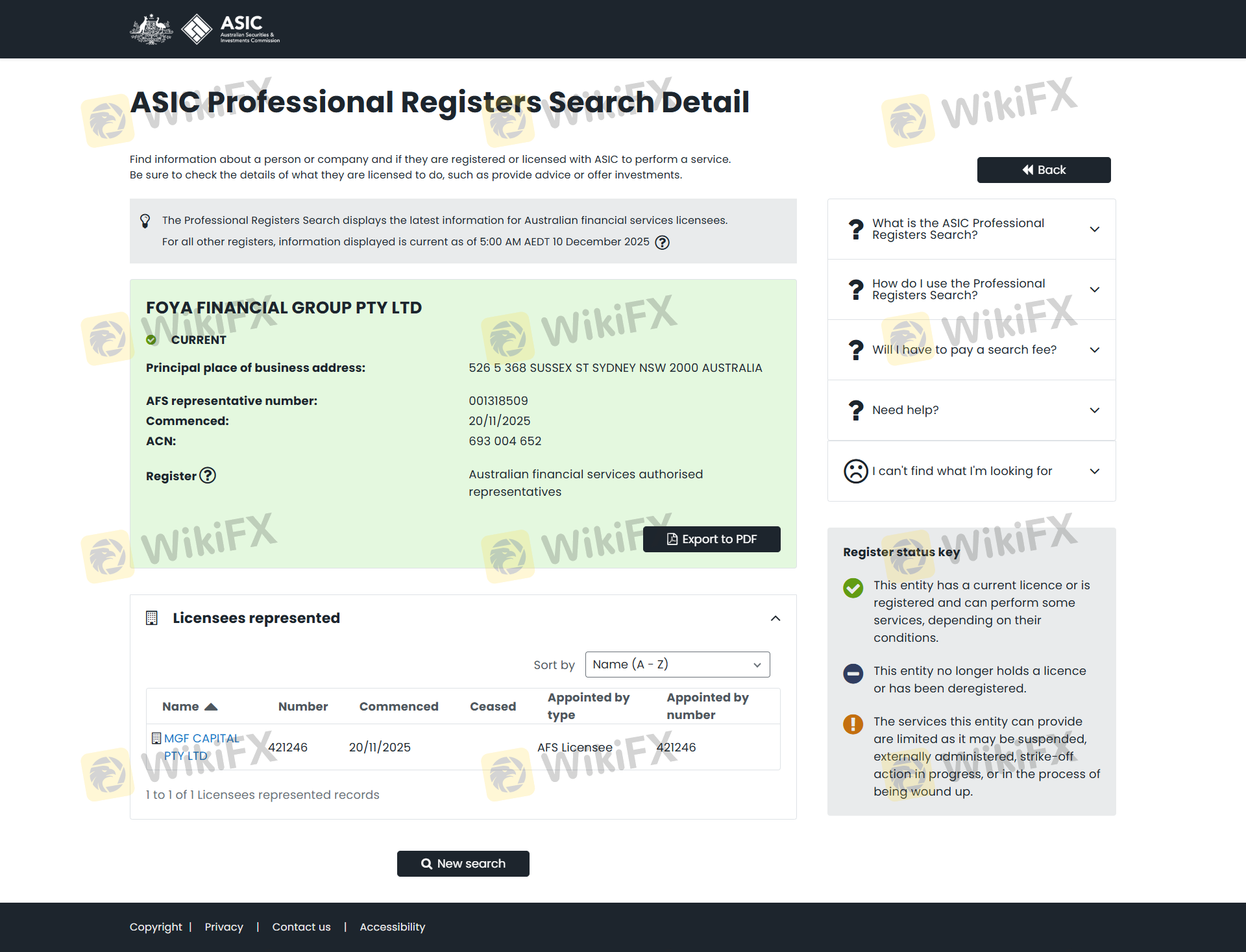 Mengenai legitimasi broker forex FOYA FINANCIAL GROUP, ia menyediakan Australia ASIC, dan .