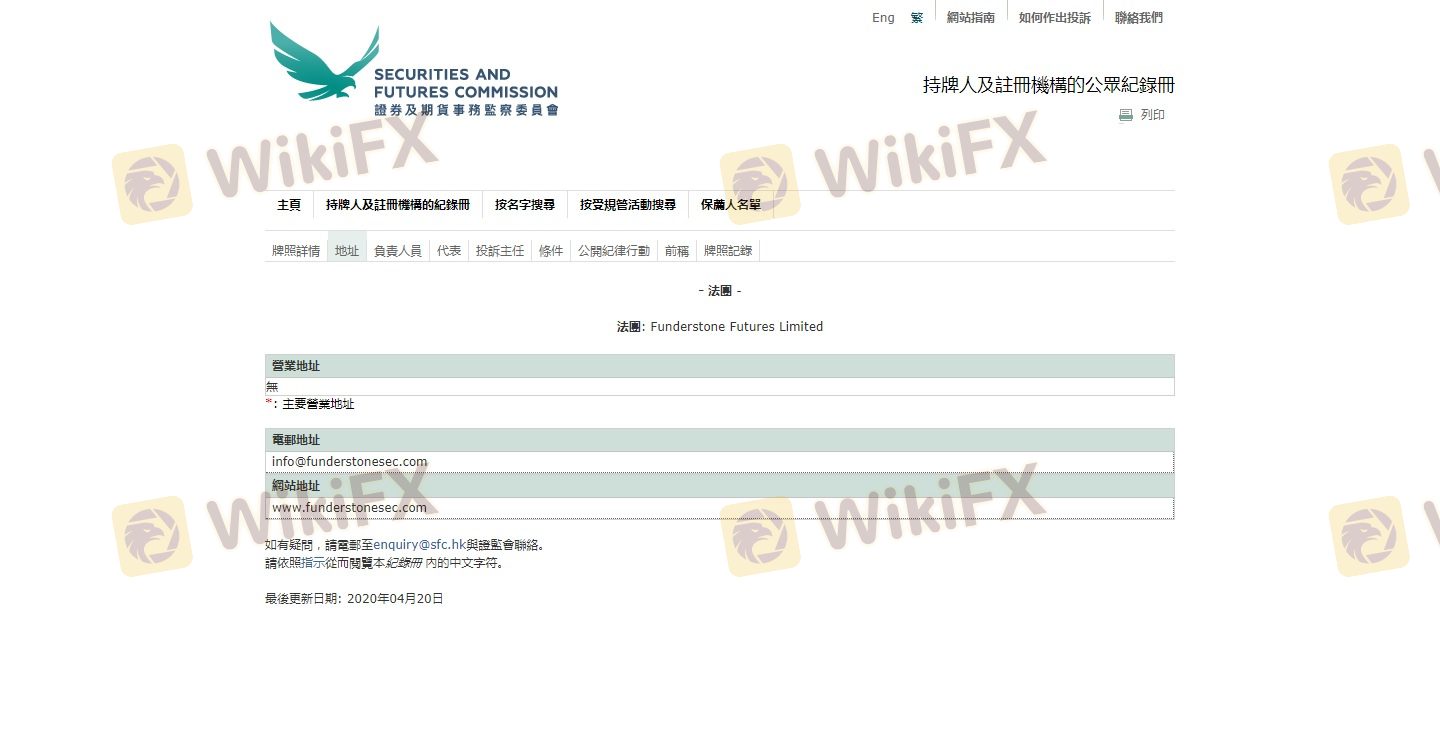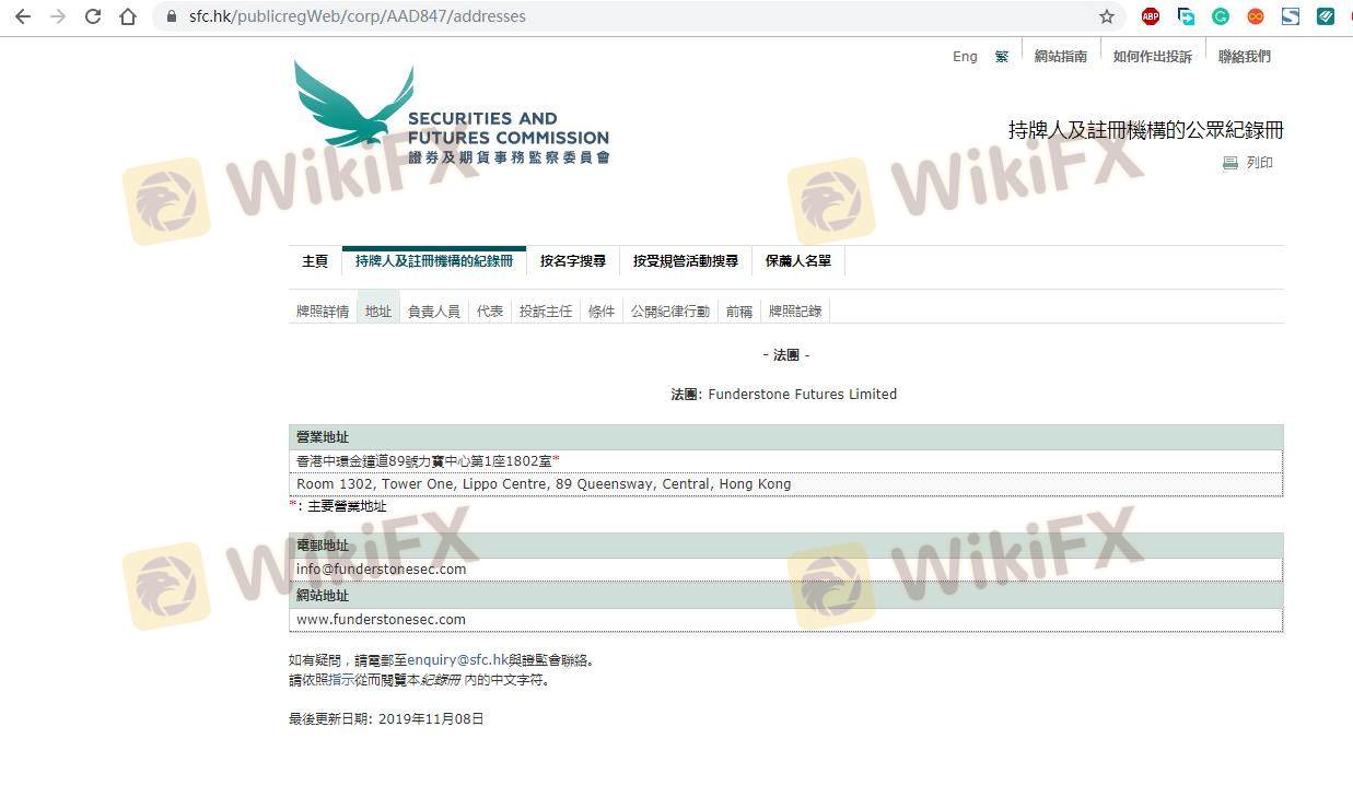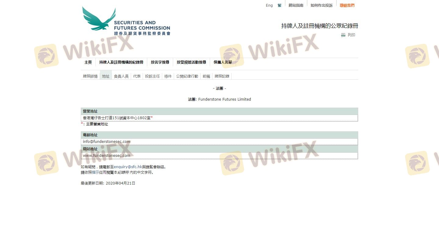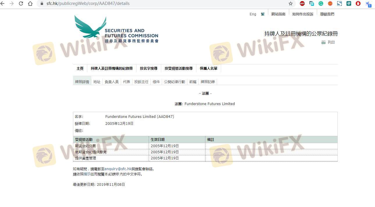 Mengenai legitimasi broker forex FUNDERSTONE, ia menyediakan Hong Kong SFC, dan (Kami juga melakukan investigasi lapangan terkait aspek keamanan.).