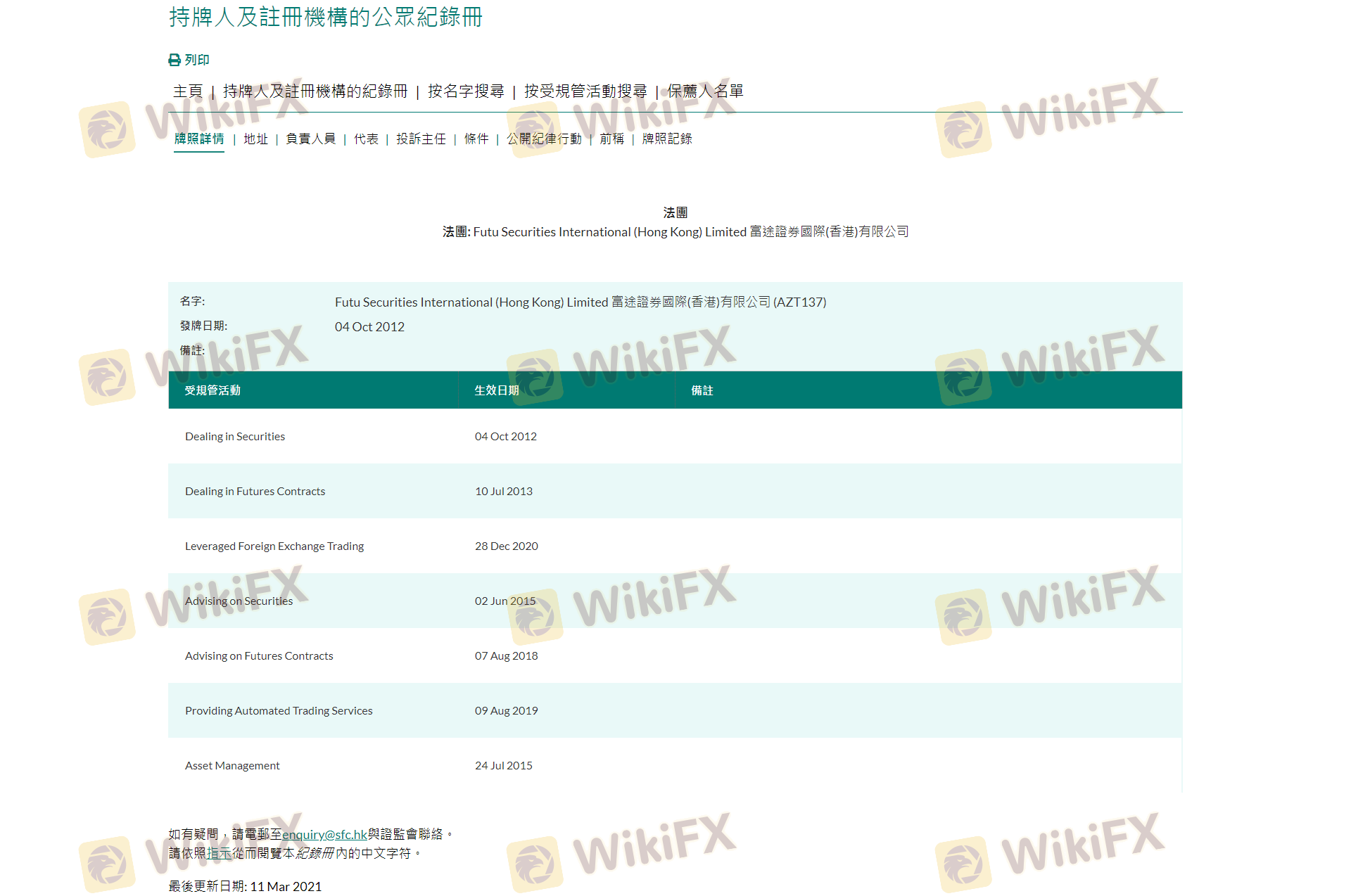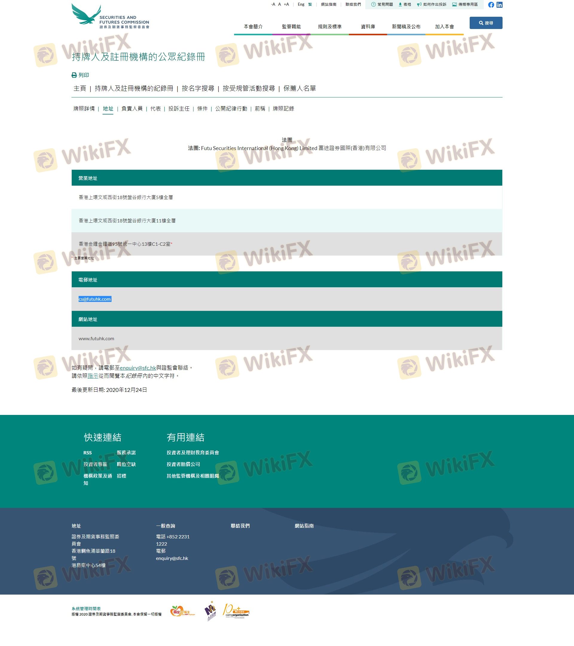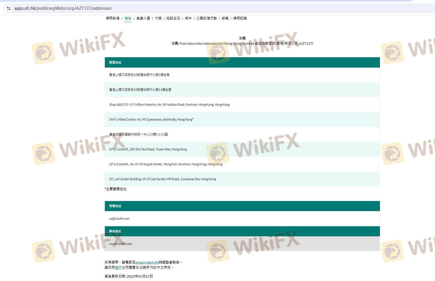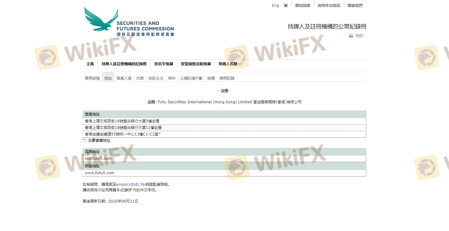 Mengenai legitimasi broker forex FUTU, ia menyediakan Hong Kong SFC, dan (Kami juga melakukan investigasi lapangan terkait aspek keamanan.).