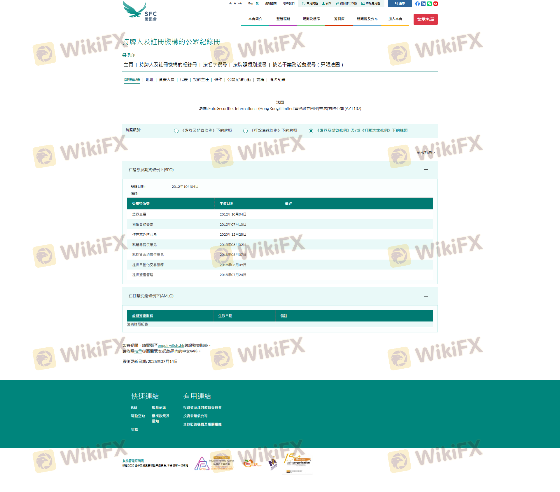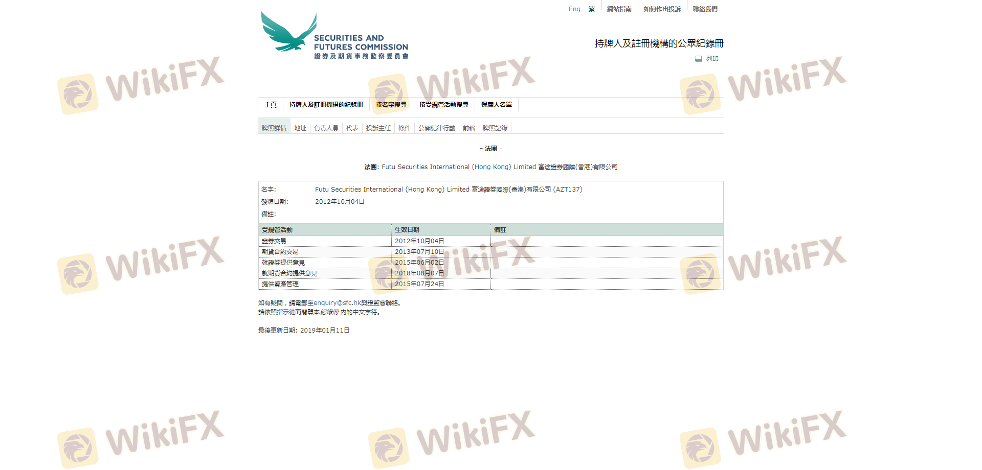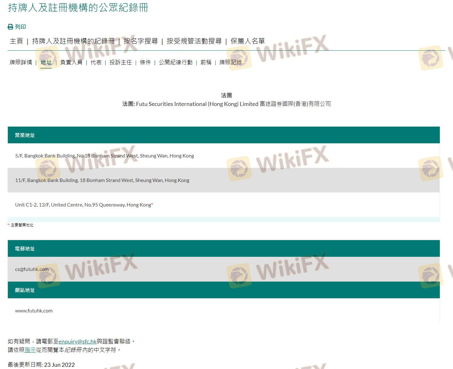 Mengenai legitimasi broker forex FUTU, ia menyediakan Hong Kong SFC, dan (Kami juga melakukan investigasi lapangan terkait aspek keamanan.).