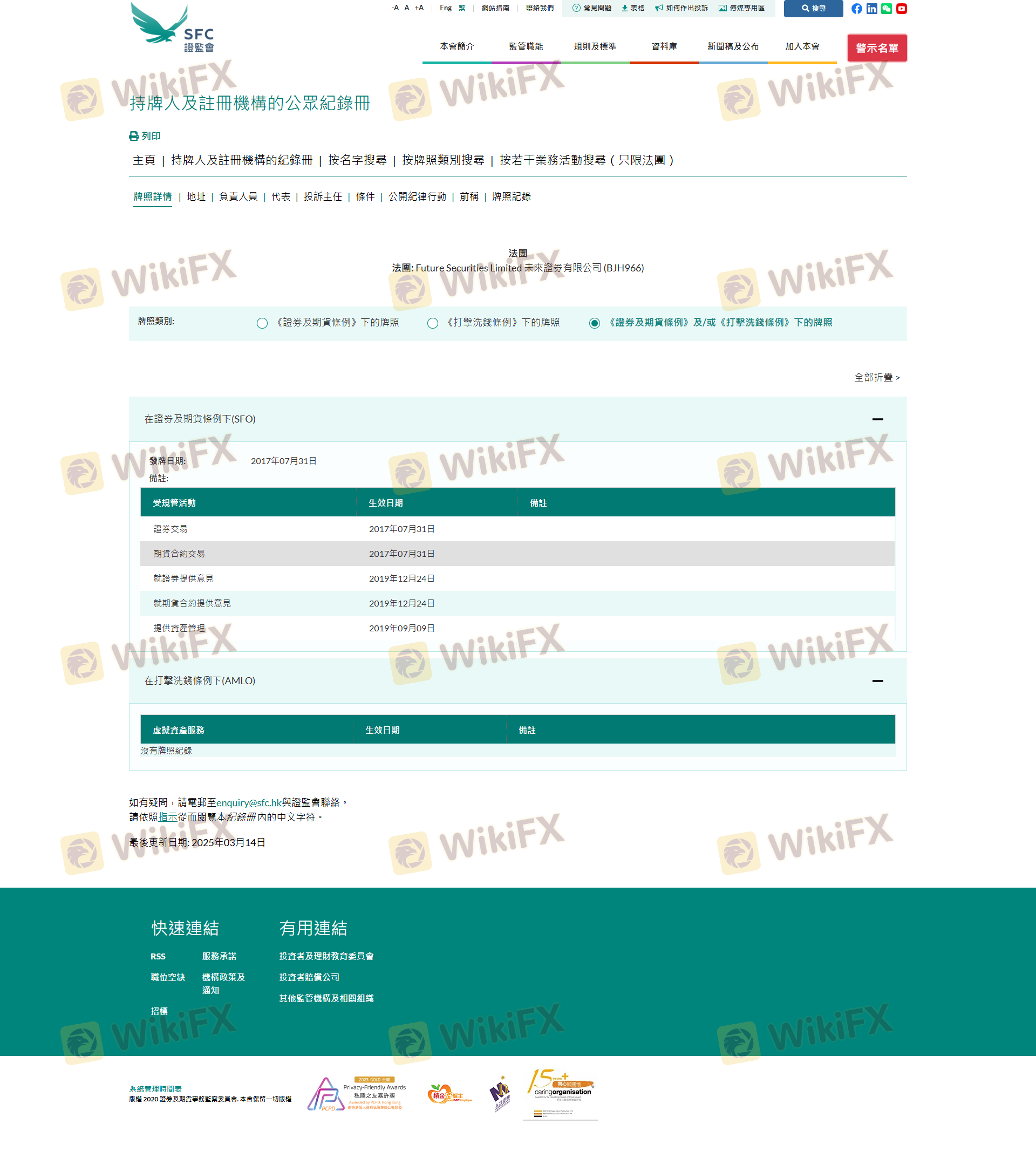 Mengenai legitimasi broker forex FUTURE SECURITIES, ia menyediakan Hong Kong SFC, dan (Kami juga melakukan investigasi lapangan terkait aspek keamanan.).