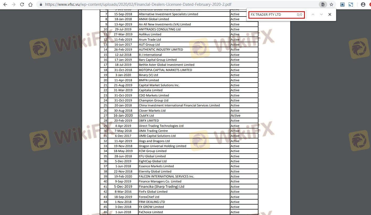 Mengenai legitimasi broker forex FX Trader, ia menyediakan Vanuatu VFSC, dan .