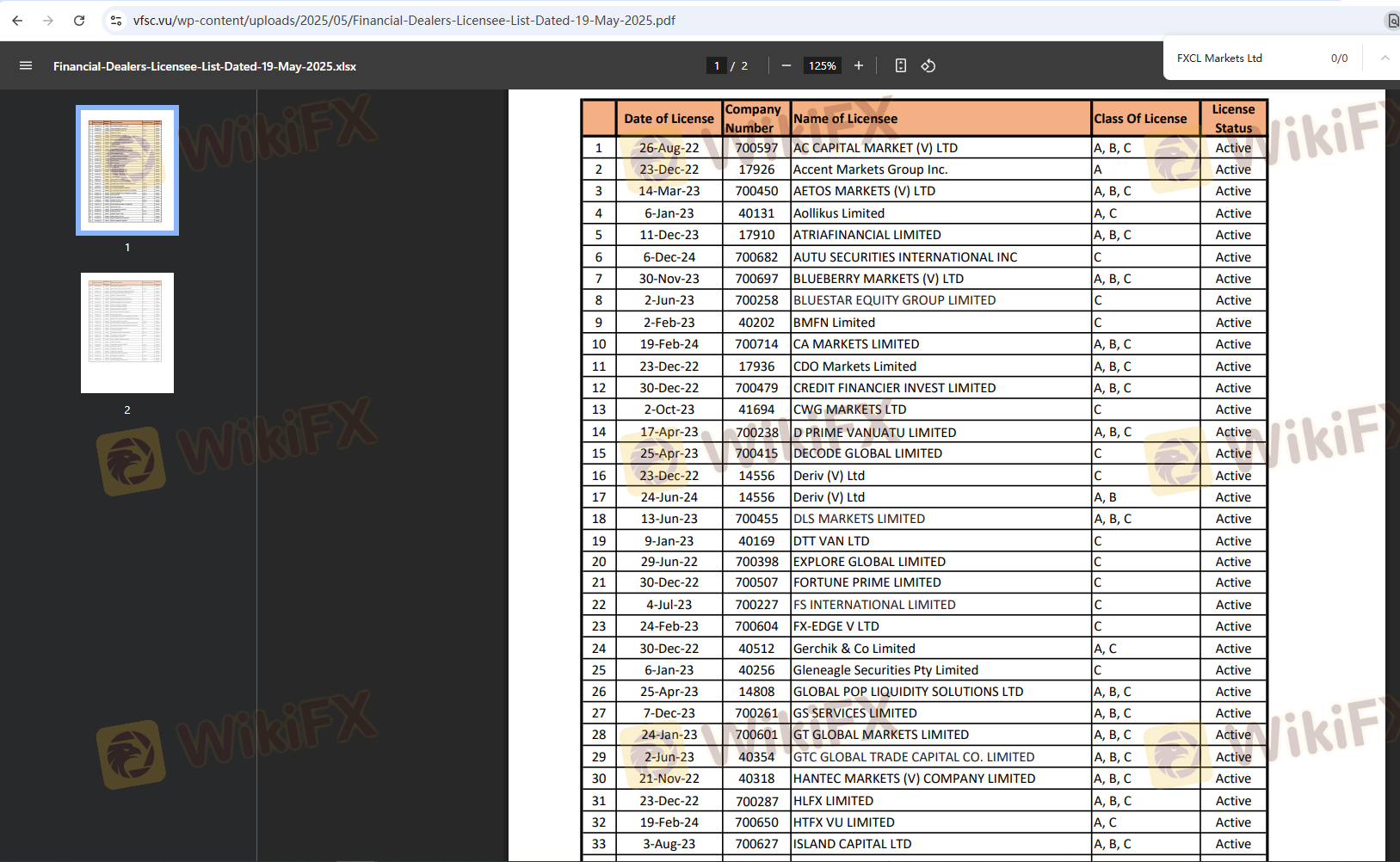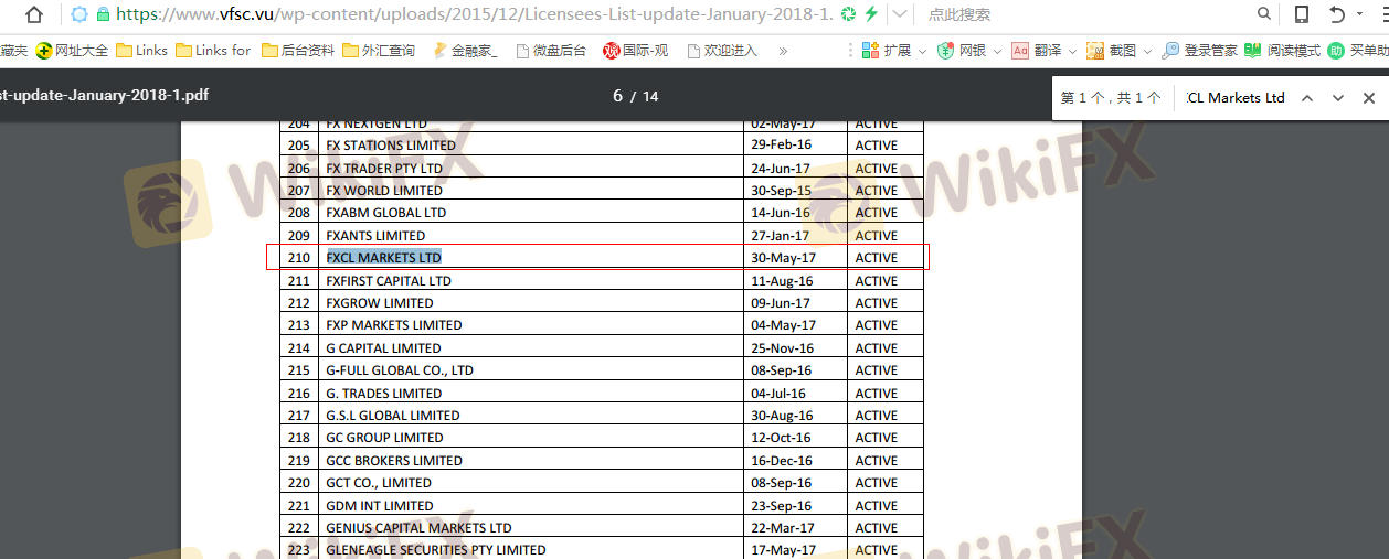 Mengenai legitimasi broker forex FXCL, ia menyediakan Vanuatu VFSC, dan .