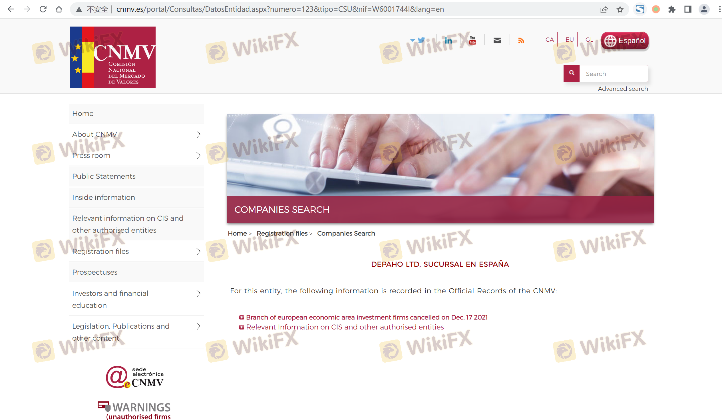 | CNMV | 123 | Spanyol | Ditangguhkan |