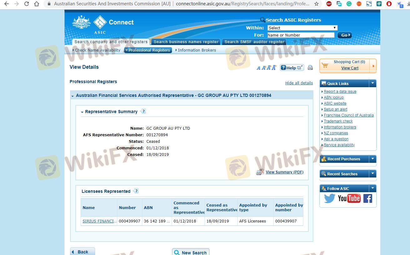Mengenai legitimasi broker forex GC Group, ia menyediakan Australia ASIC, Selandia Baru FSPR, dan (Kami juga melakukan investigasi lapangan terkait aspek keamanan.).