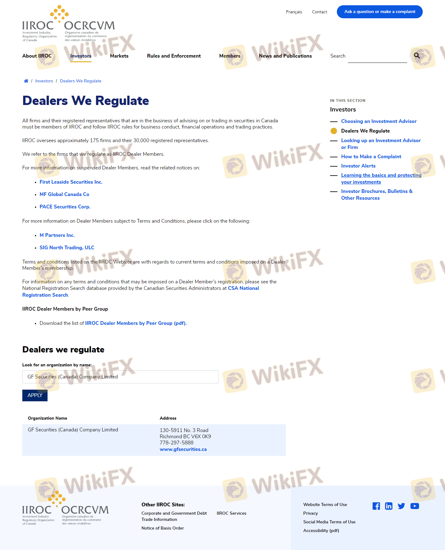 Mengenai legitimasi broker forex GF SECURITIES (CANADA) COMPANY LIMITED, ia menyediakan Kanada CIRO, dan (Kami juga melakukan investigasi lapangan terkait aspek keamanan.).