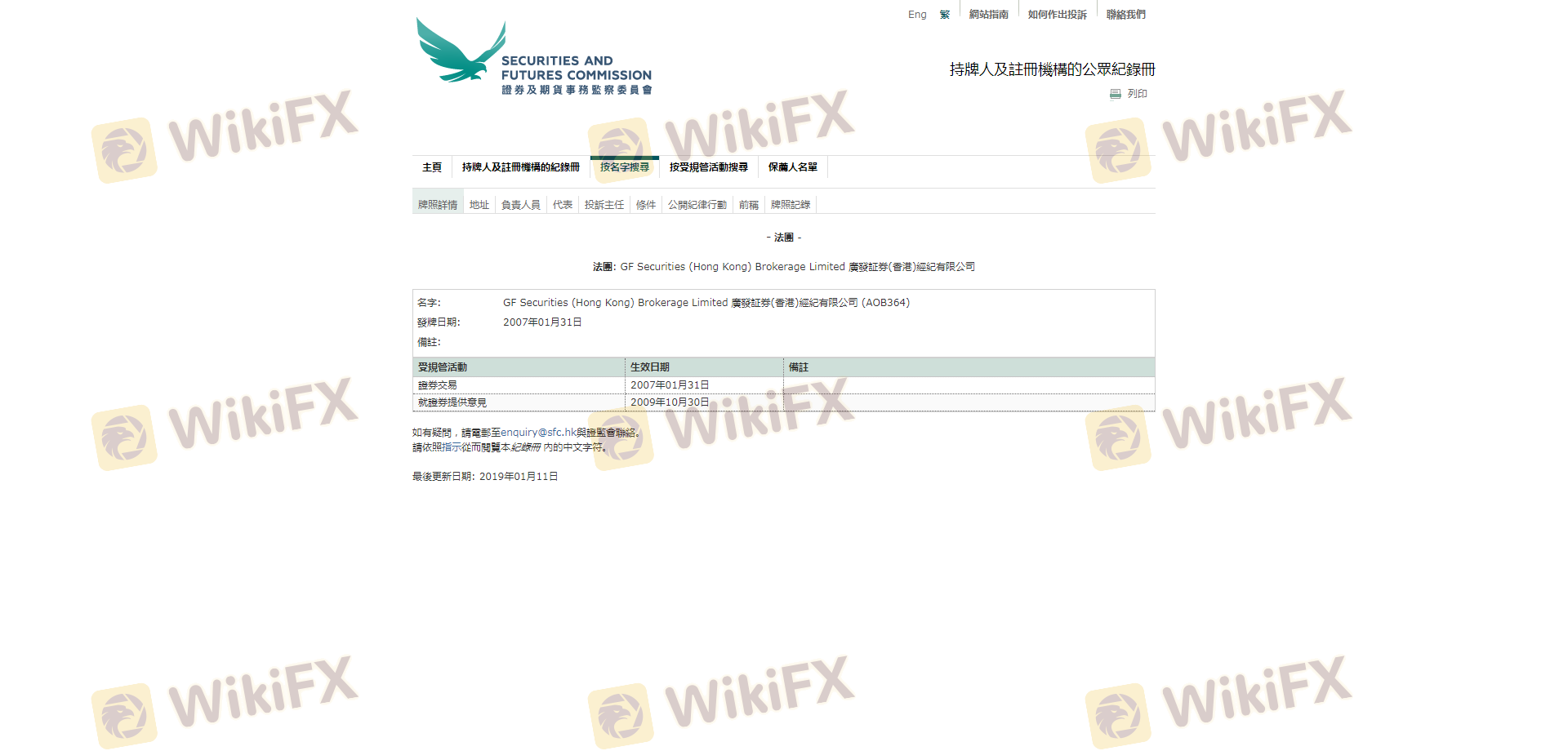 Lingkungan regulasi adalah faktor kritis dalam menilai keamanan broker forex mana pun. GF Securities (Hong Kong) mengklaim diatur oleh Securities and Futures Commission (SFC) Hong Kong. SFC dikenal karena standar regulasinya yang ketat, yang bertujuan untuk melindungi investor dan memastikan praktik perdagangan yang adil. Berikut adalah ringkasan informasi regulasi inti yang berkaitan dengan GF Securities: