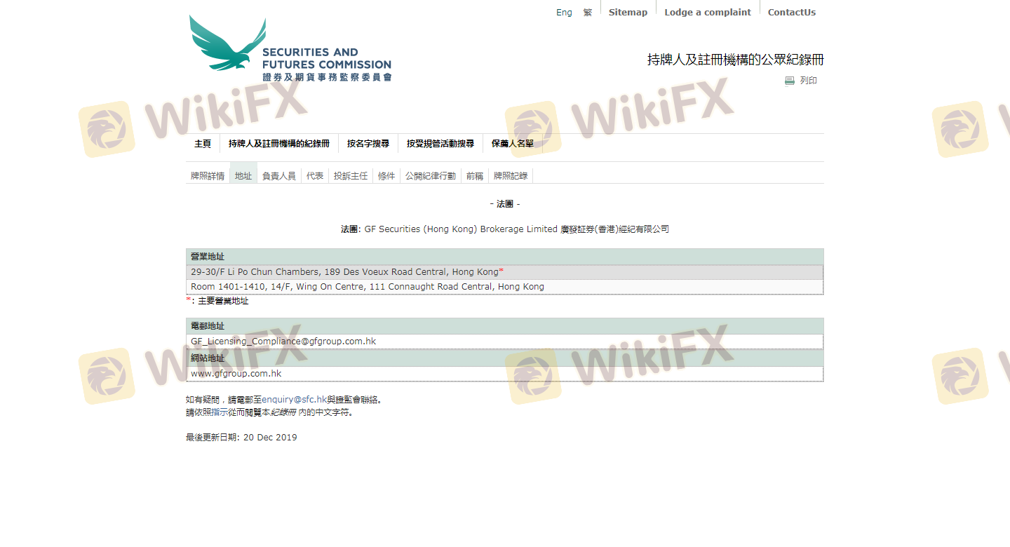 Mengenai legitimasi broker forex GF SECURITIES (HONG KONG), ia menyediakan Hong Kong SFC, Hong Kong SFC, dan (Kami juga melakukan investigasi lapangan terkait aspek keamanan.).