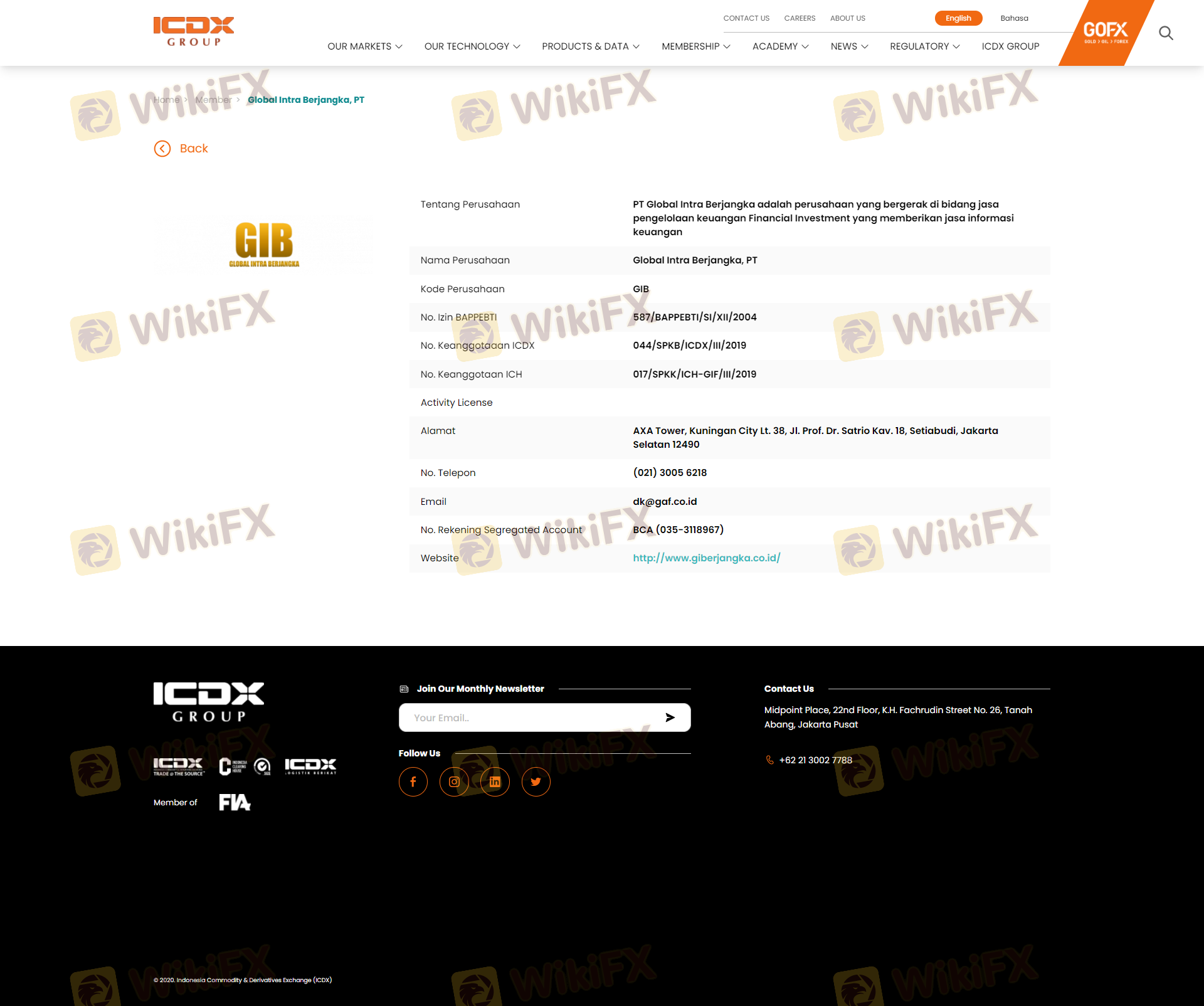 Mengenai legitimasi broker forex GIB, ia menyediakan Indonesia BAPPEBTI, Indonesia ICDX, dan (Kami juga melakukan investigasi lapangan terkait aspek keamanan.).