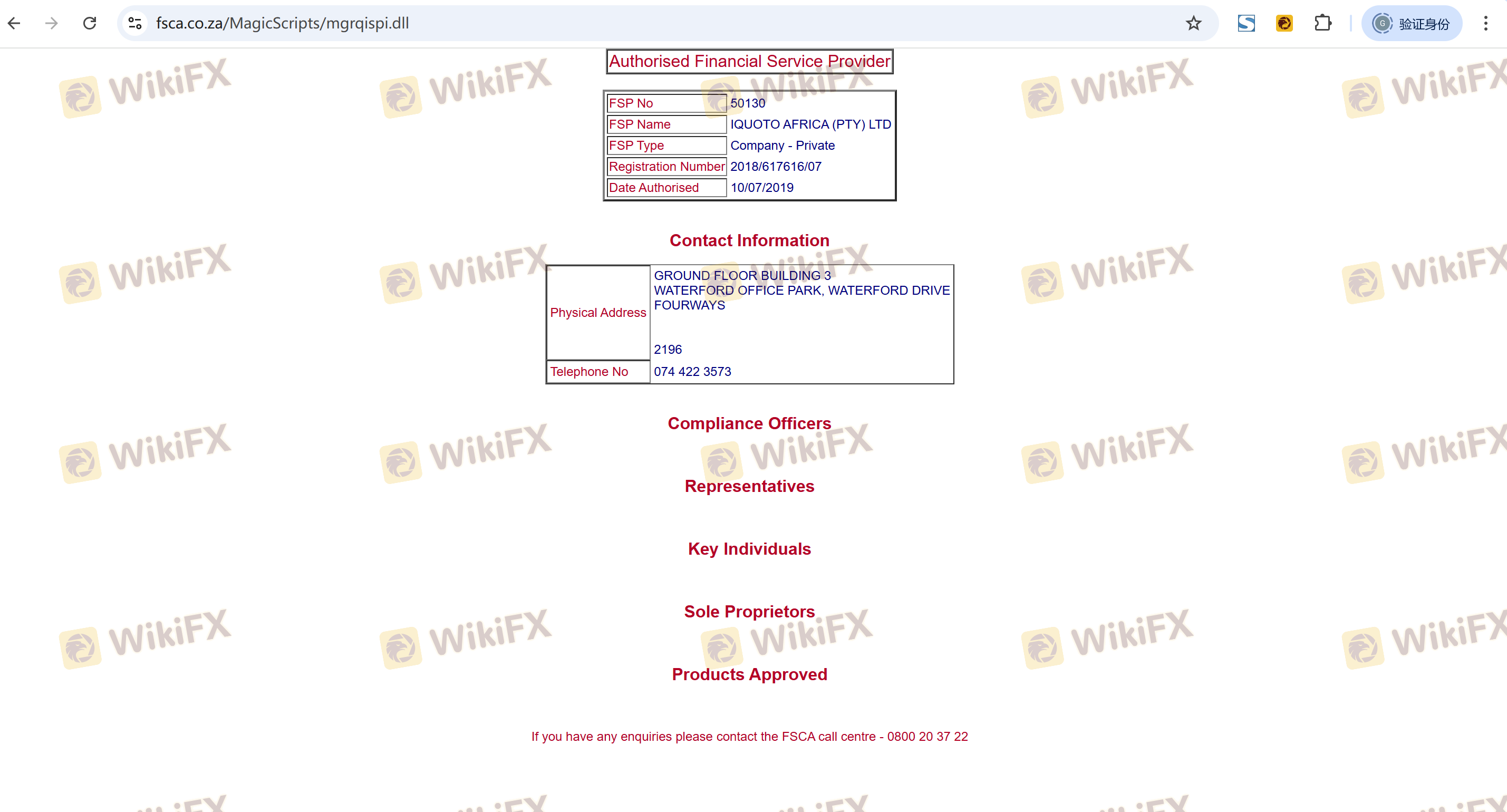| FSCA | FSP 50130 | Afrika Selatan | Terverifikasi |