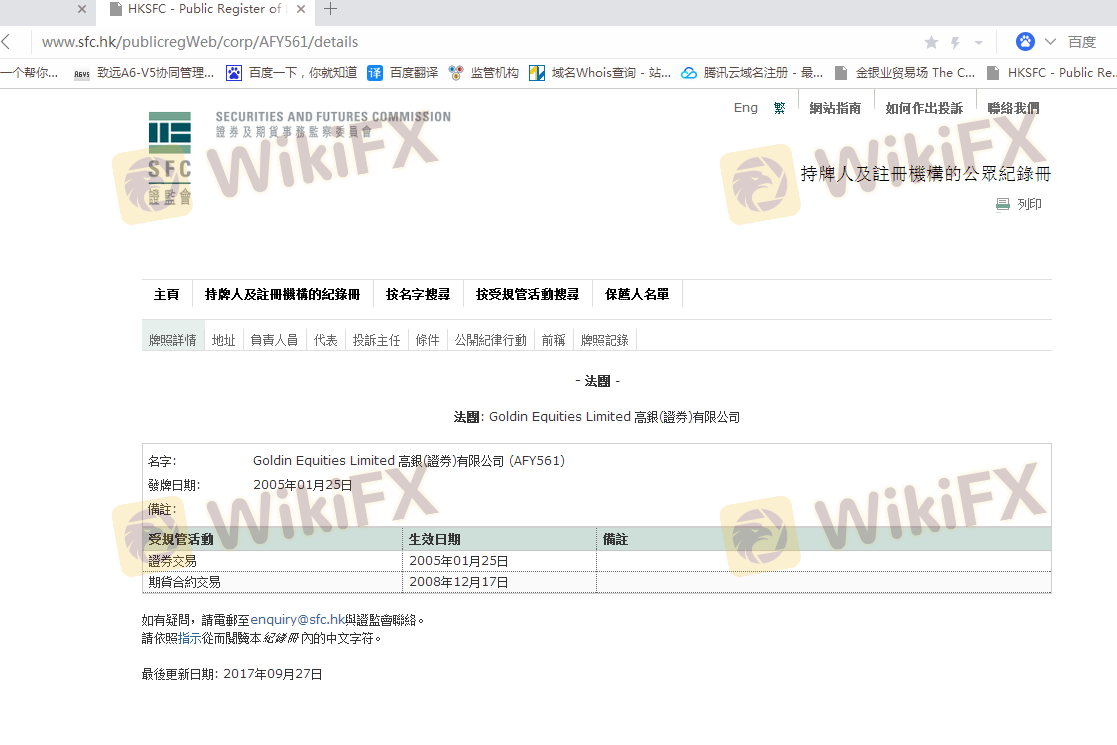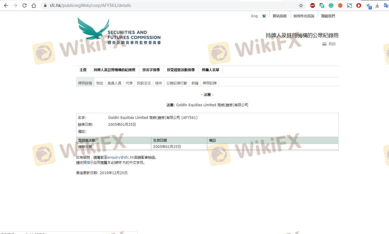 Mengenai legitimasi broker forex Goldin Equities, ia menyediakan Hong Kong SFC, dan (Kami juga melakukan investigasi lapangan terkait aspek keamanan.).