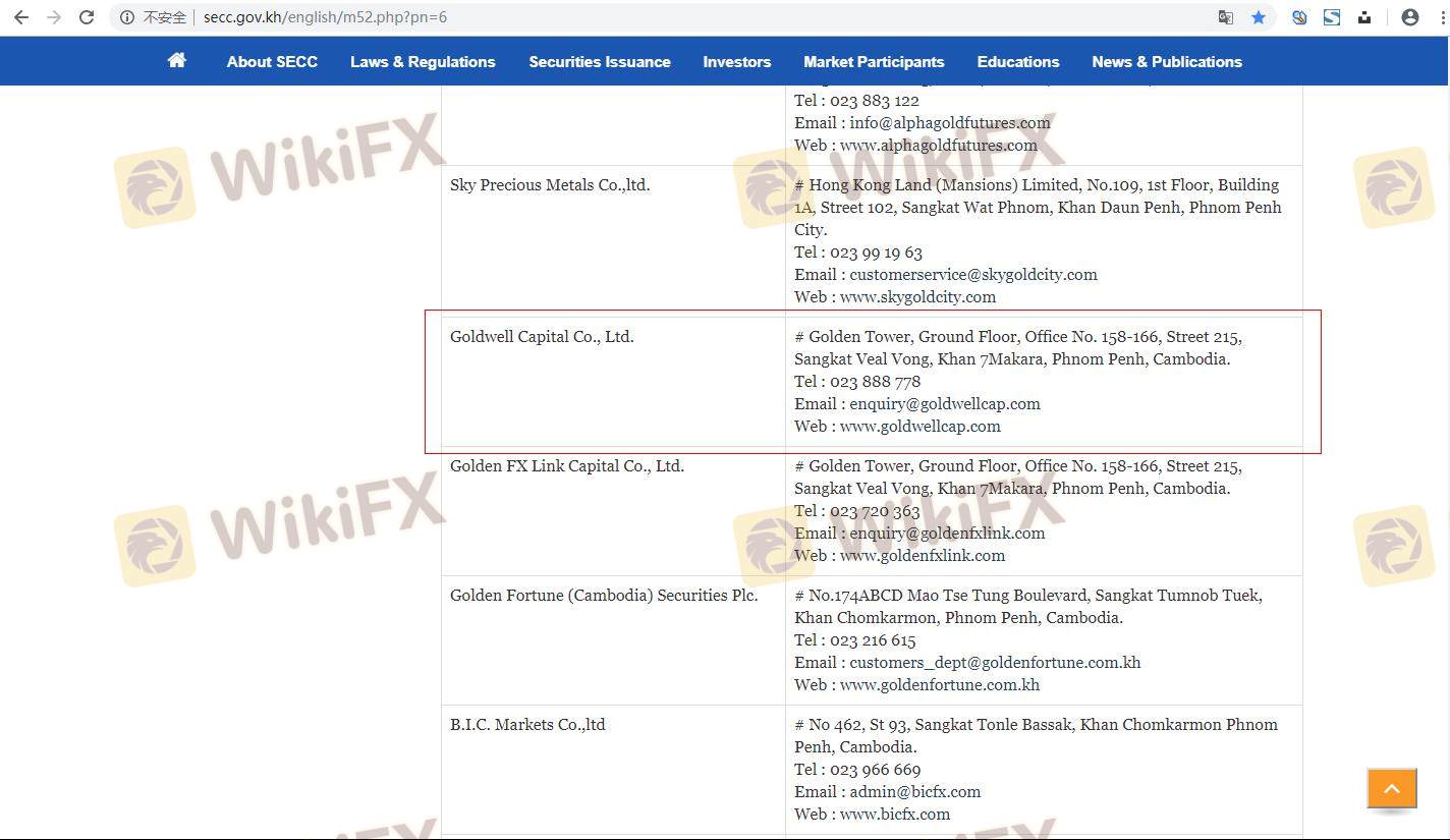 Mengenai legitimasi broker forex Goldwell Capital, ia menyediakan Kamboja SERC, dan (Kami juga melakukan investigasi lapangan terkait aspek keamanan.).