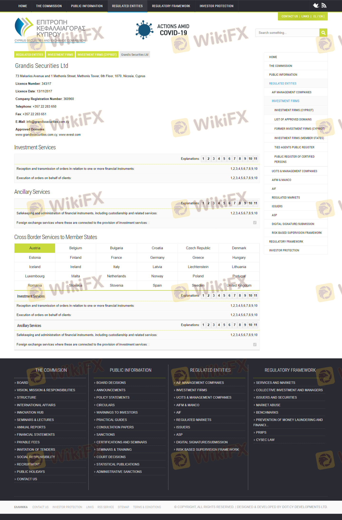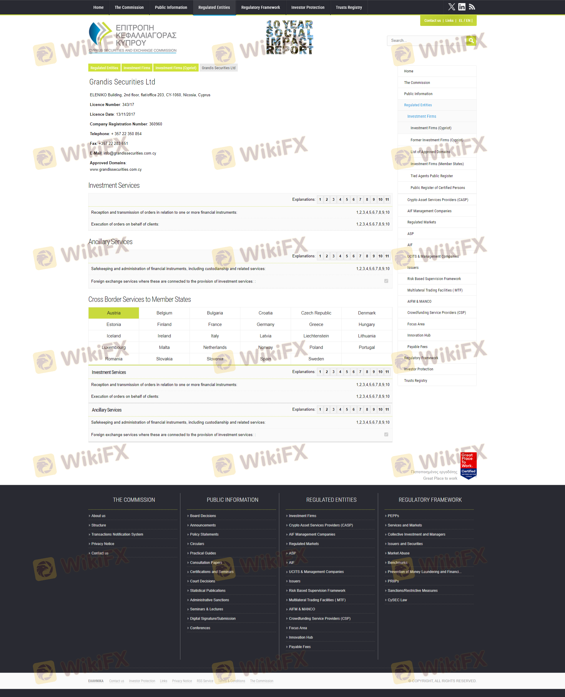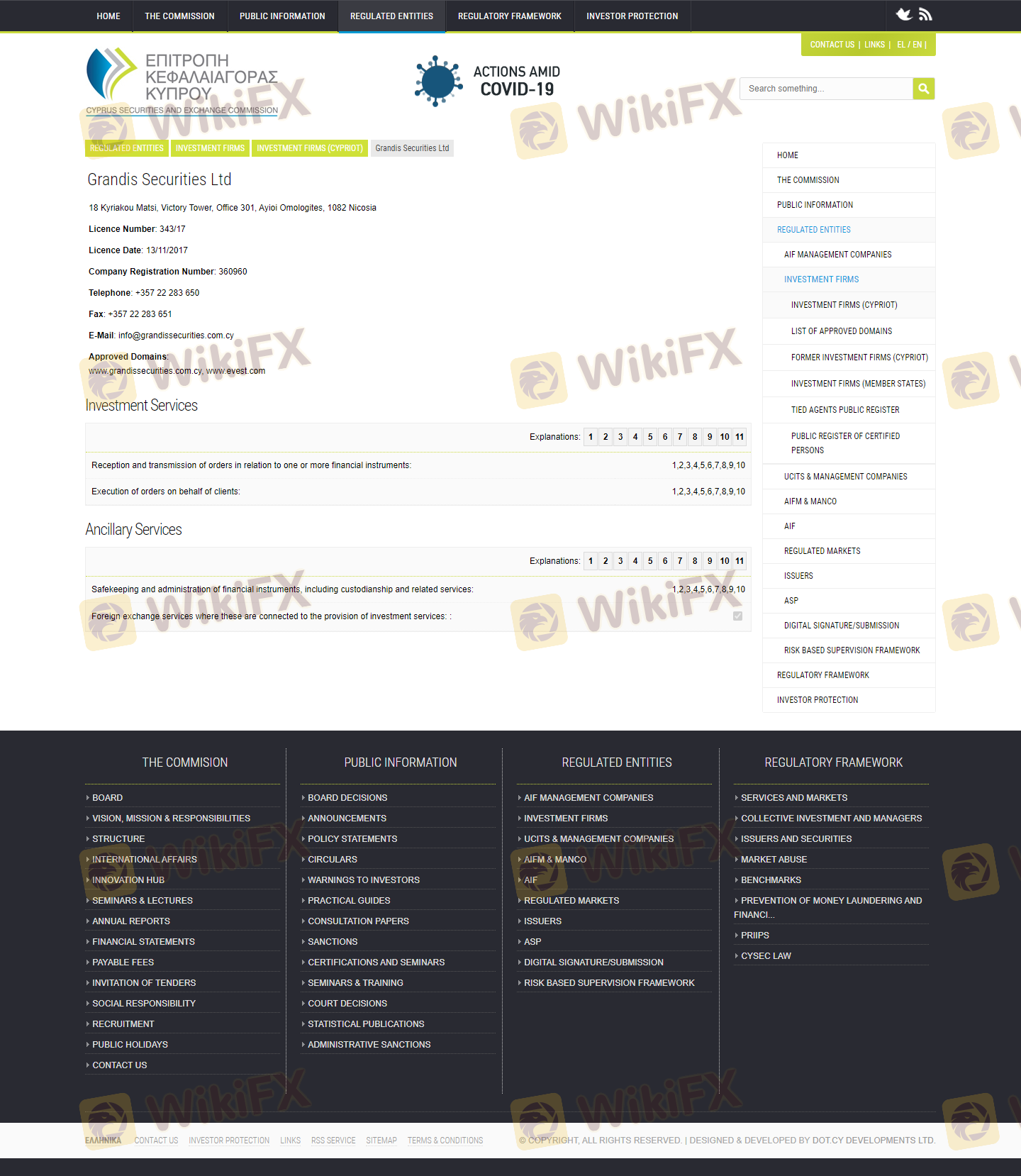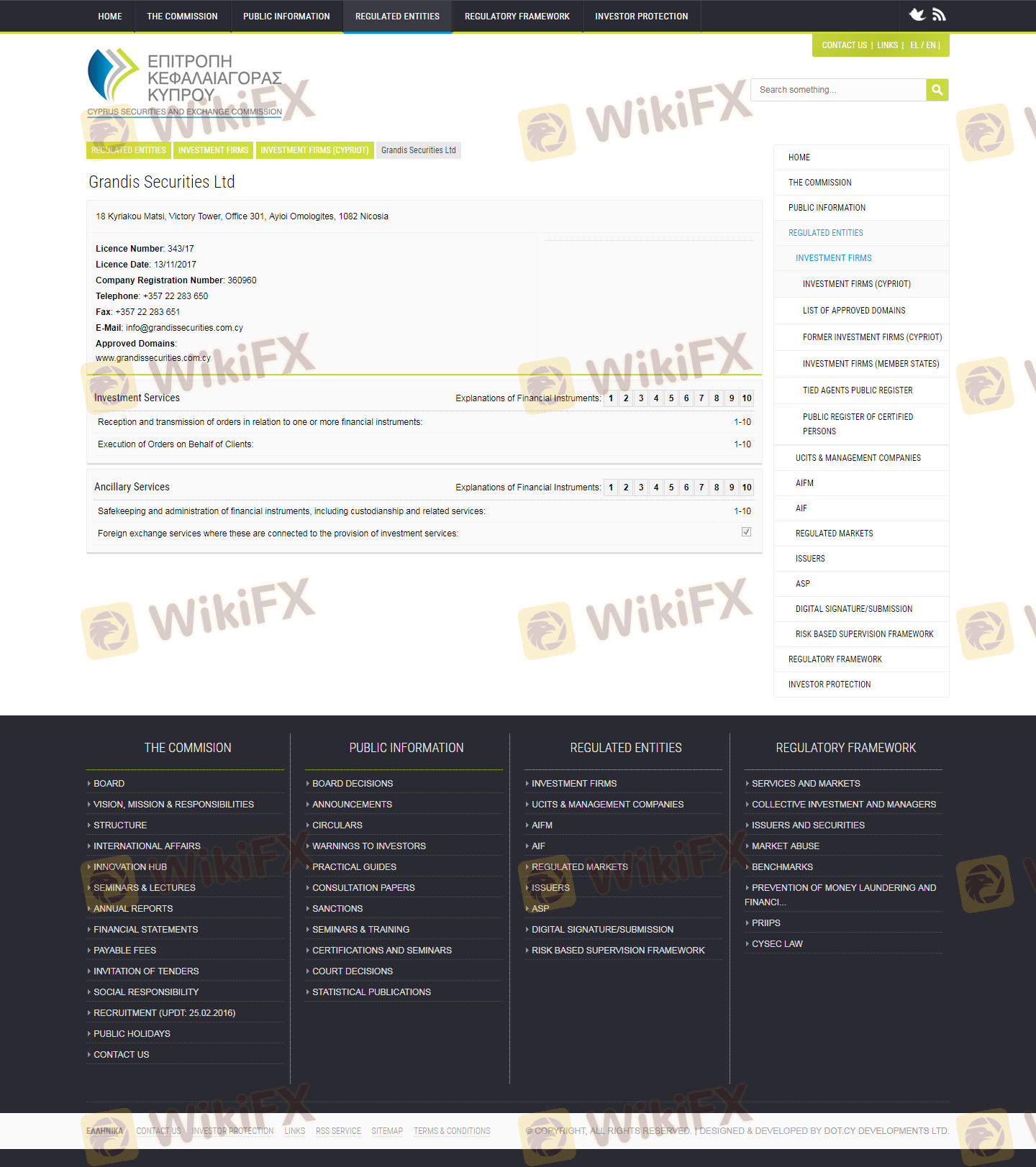 Mengenai legitimasi broker forex GRANDIS SECURITIES, ia menyediakan Siprus CYSEC, dan (Kami juga melakukan investigasi lapangan terkait aspek keamanan.).